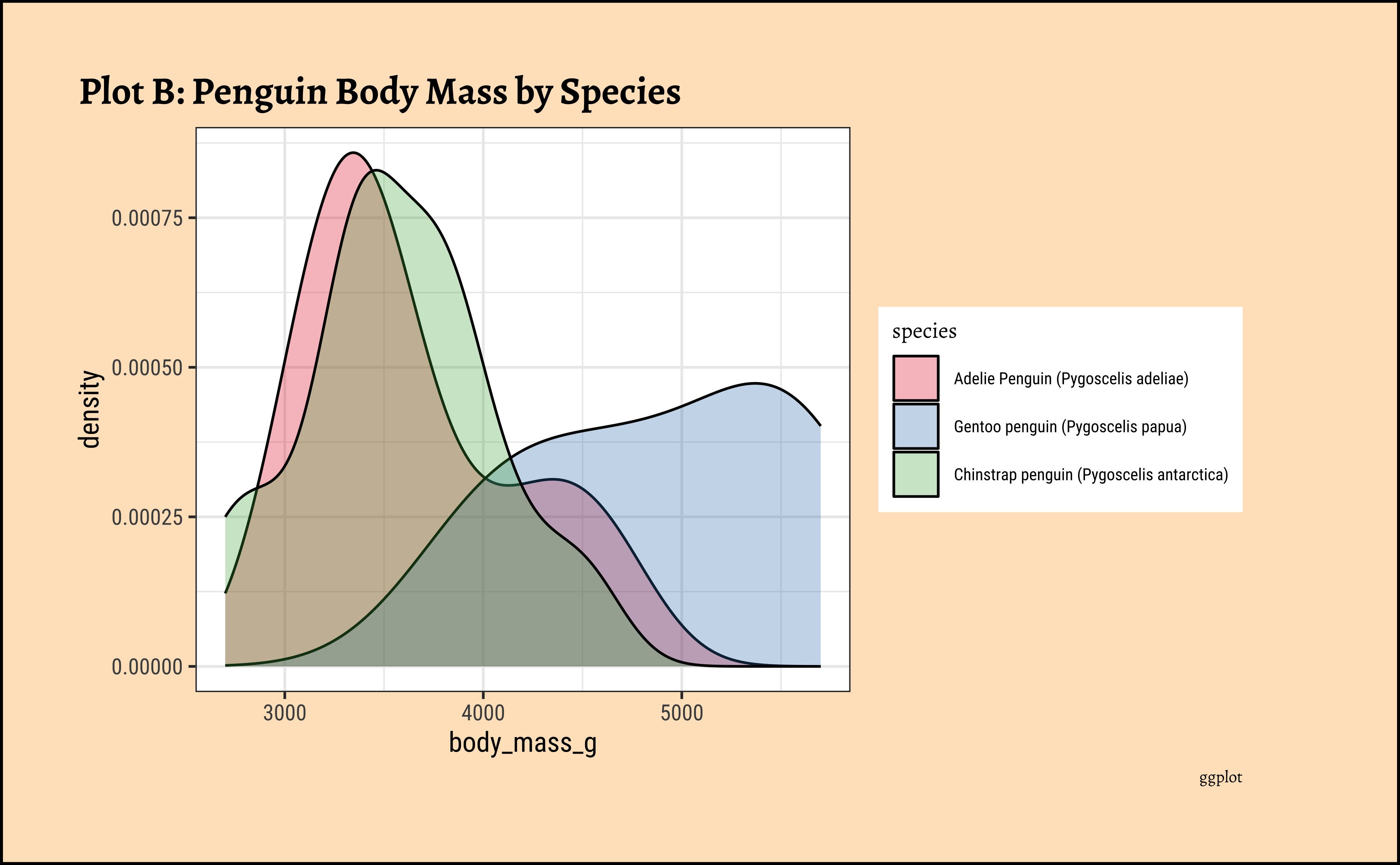 labs(title = "Plot A: Penguin Masses", caption = "ggplot")