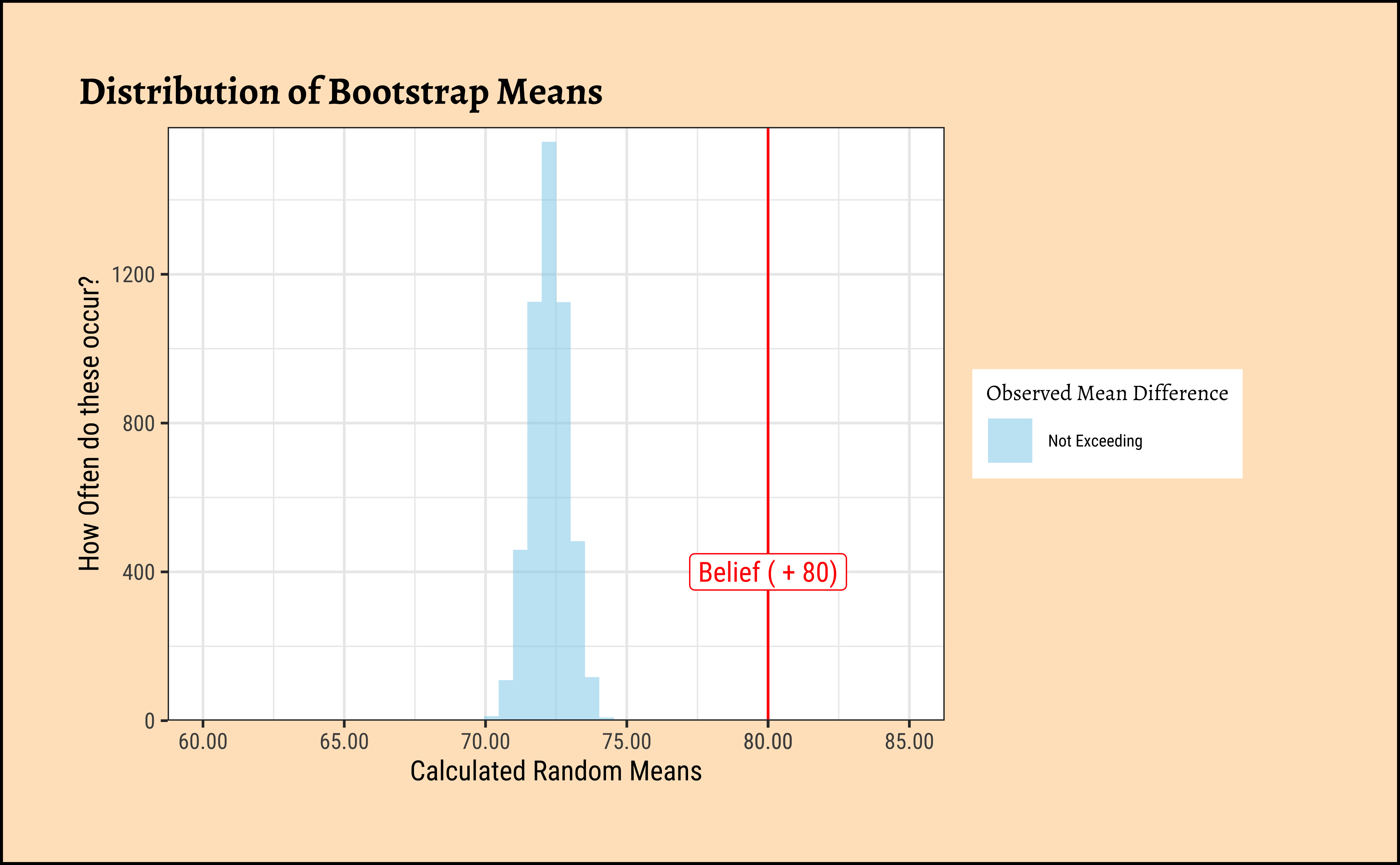 As we will notice, the process of Statistical Inference is an attitude: ain’t nothing happenin’! We look at data that we might have received or collected ourselves, and look at it with this attitude, seemingly, of some disbelief. Here is how we proceed: