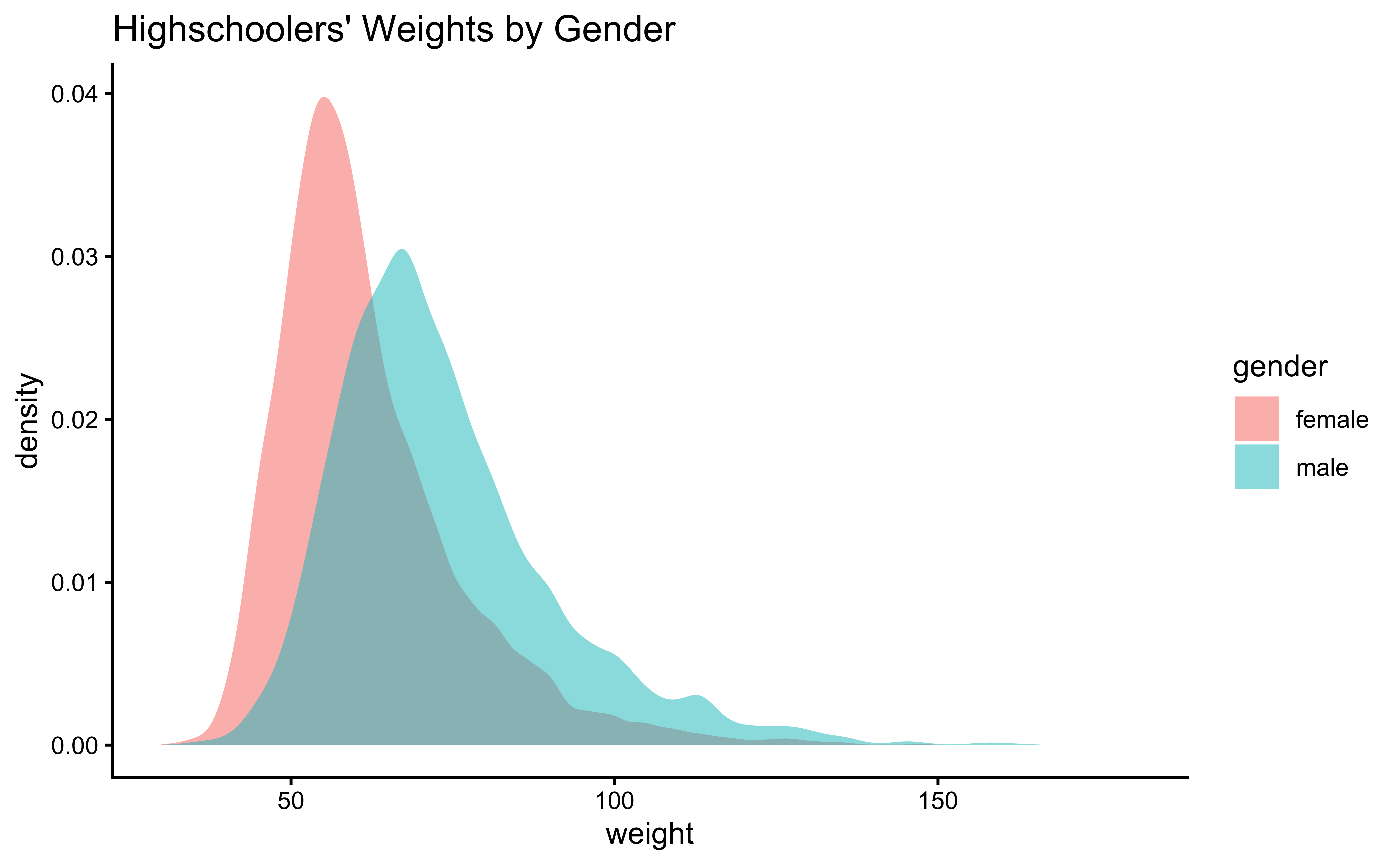 Based on the graphs, how would we formulate our Hypothesis? We wish to infer whether there is difference in mean weight across gender. So accordingly: