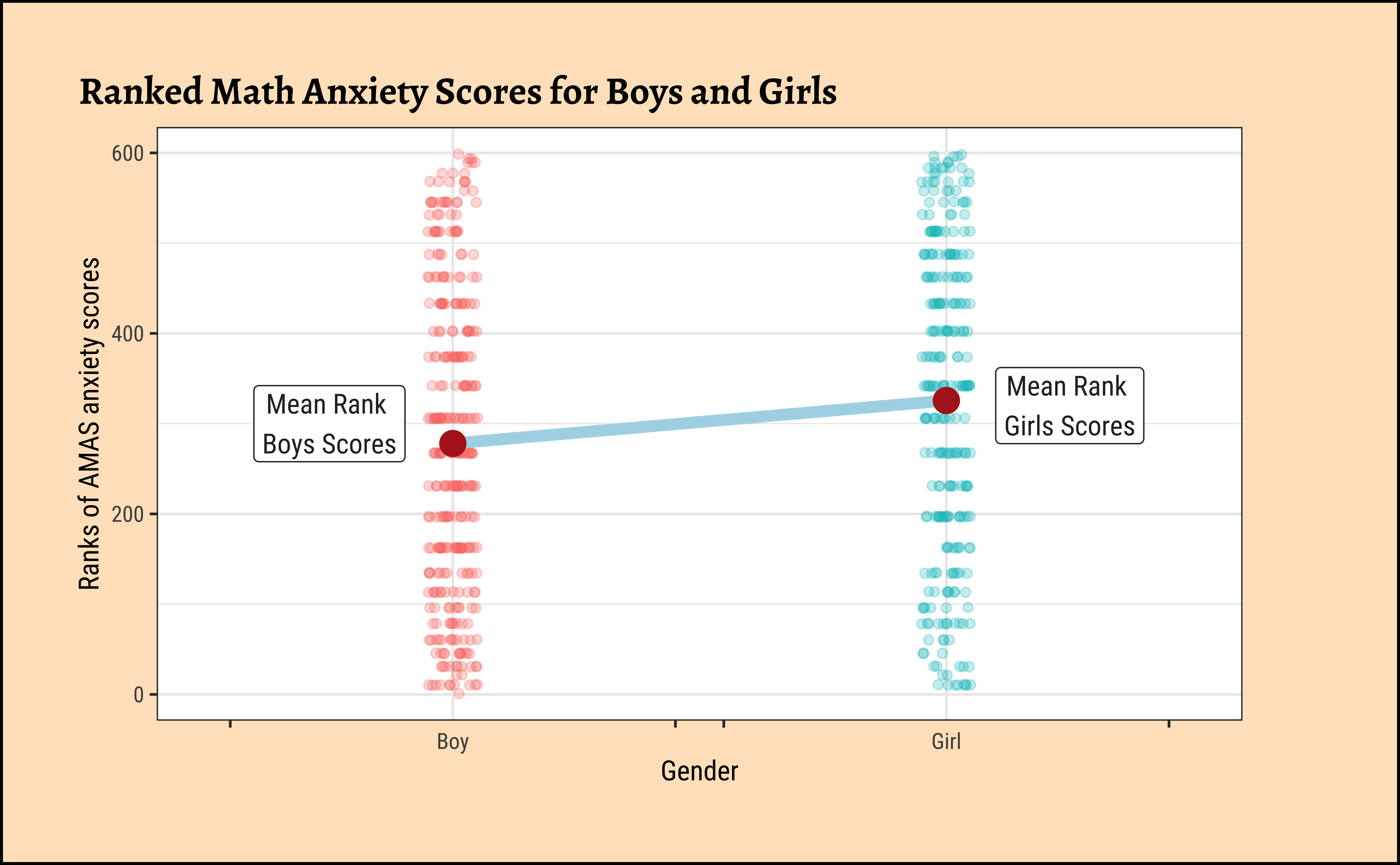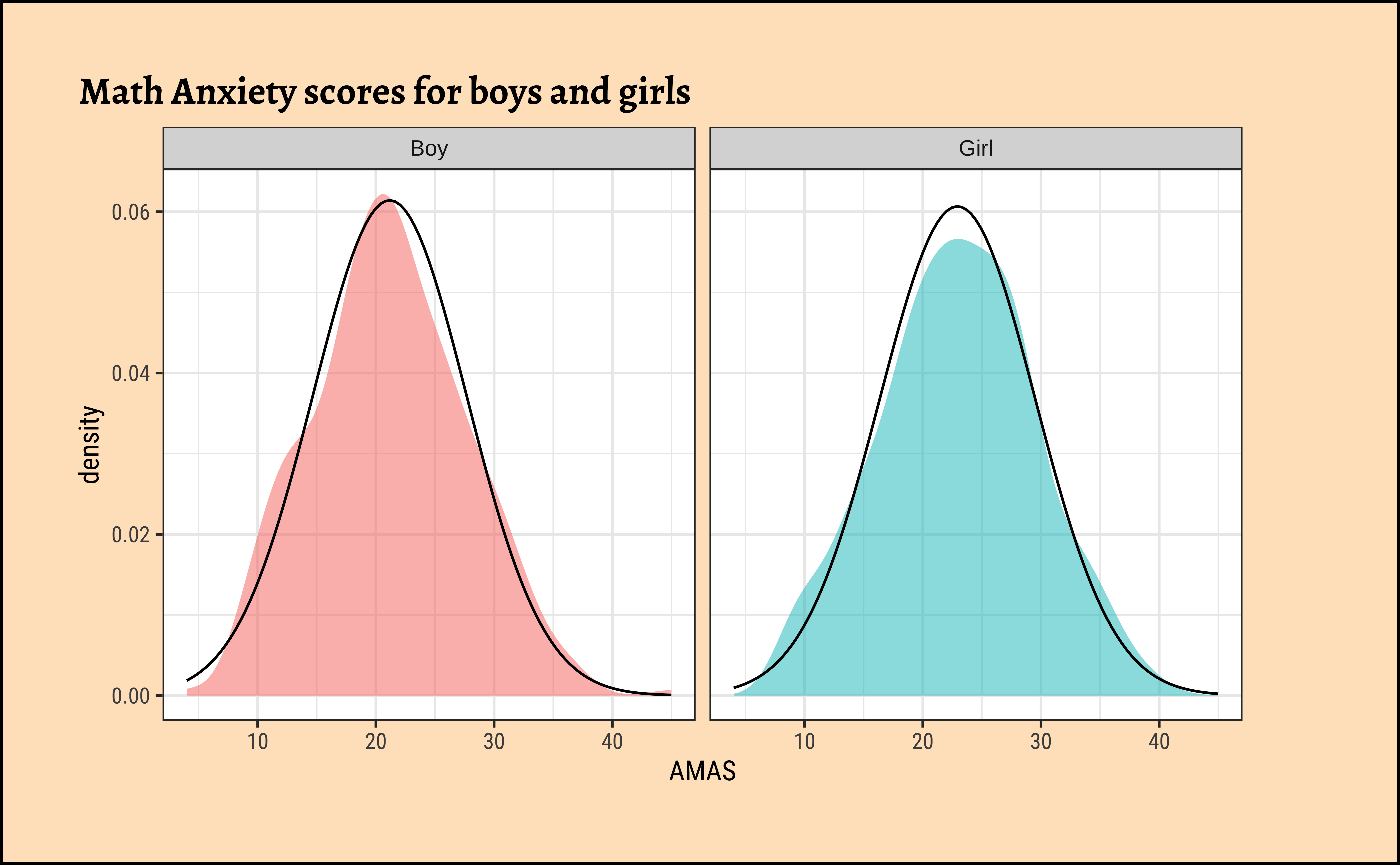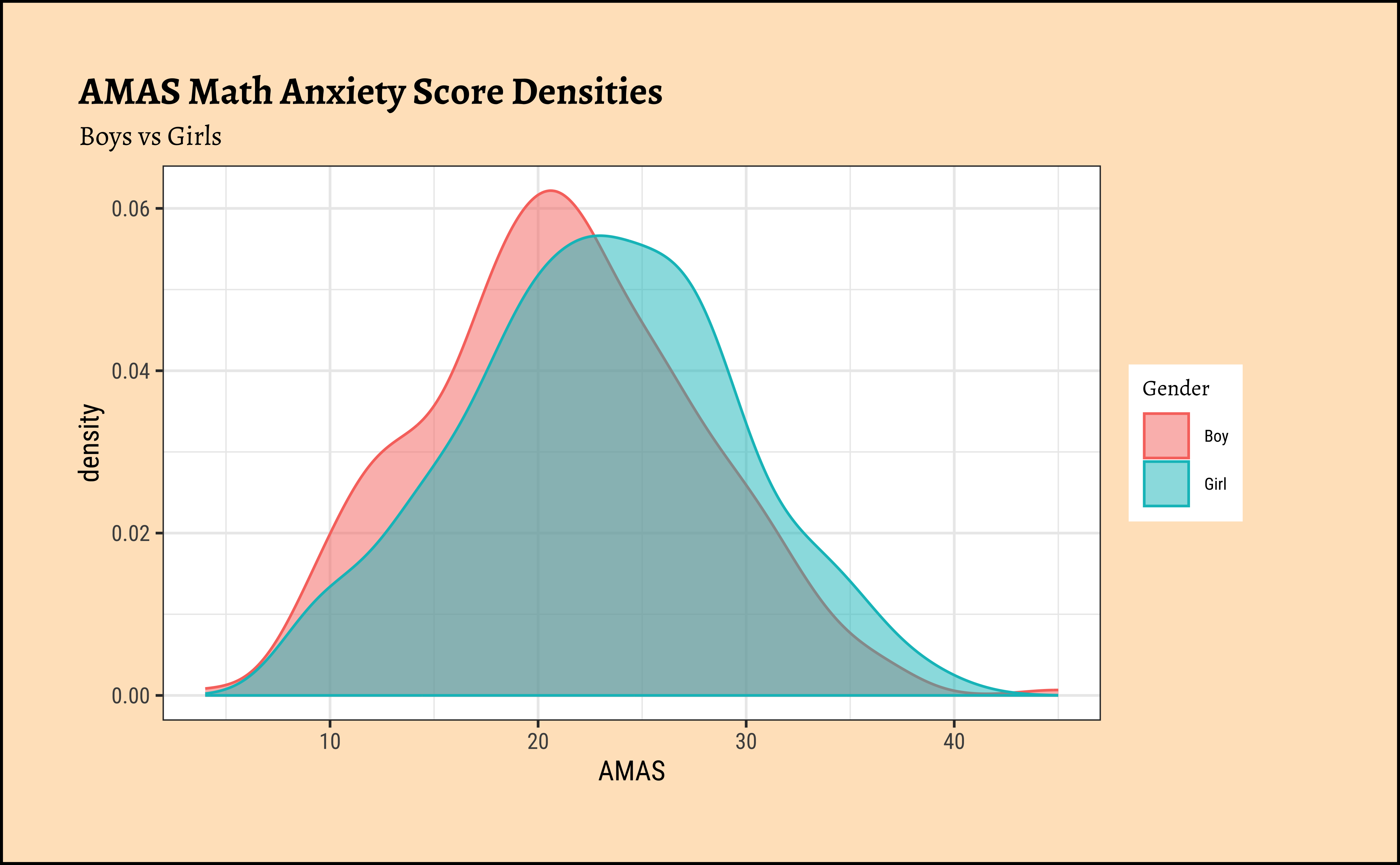 Let us look at the MathAnxiety dataset from the package resampledata. Here we have “anxiety” scores for boys and girls, for different components of mathematics.