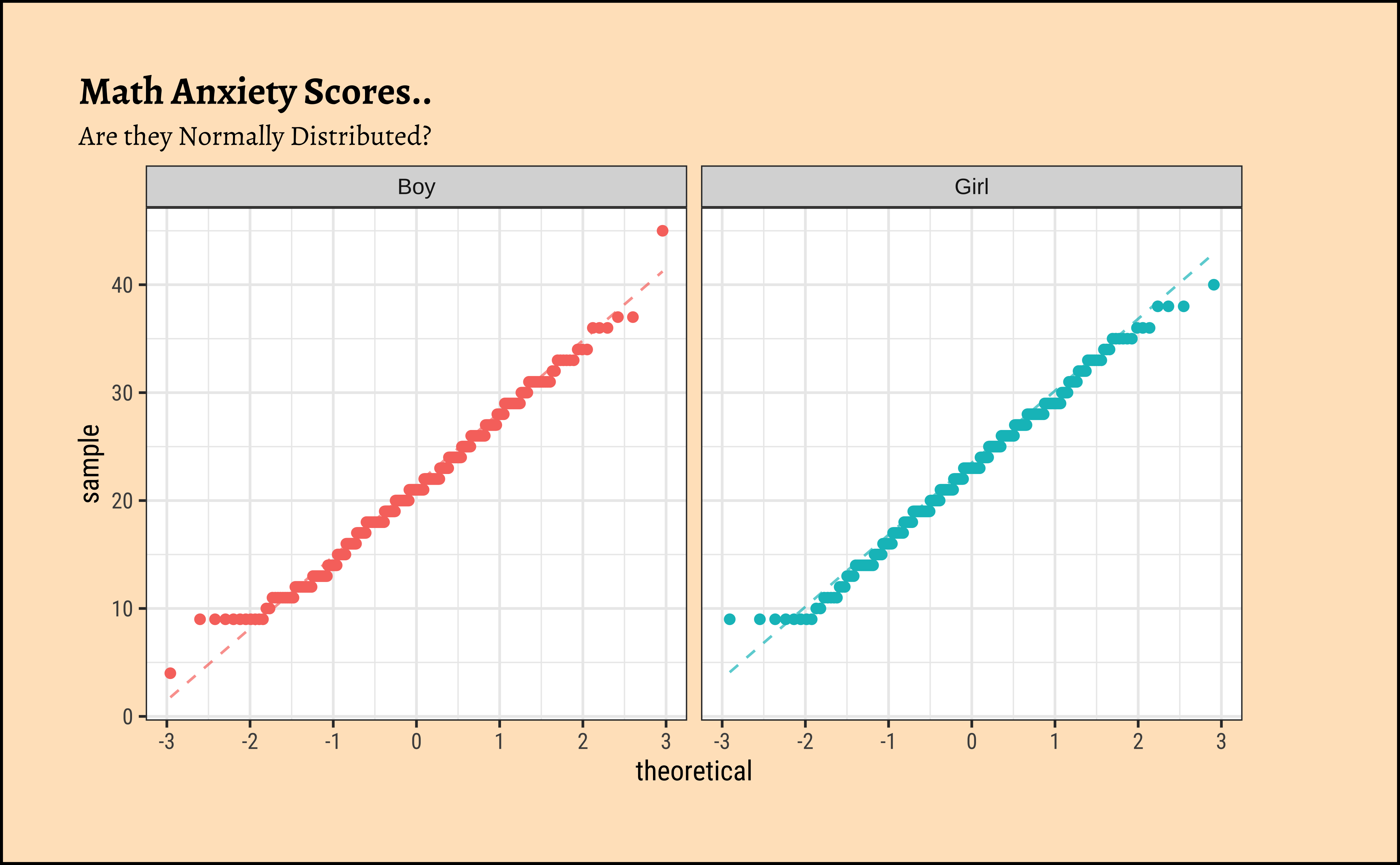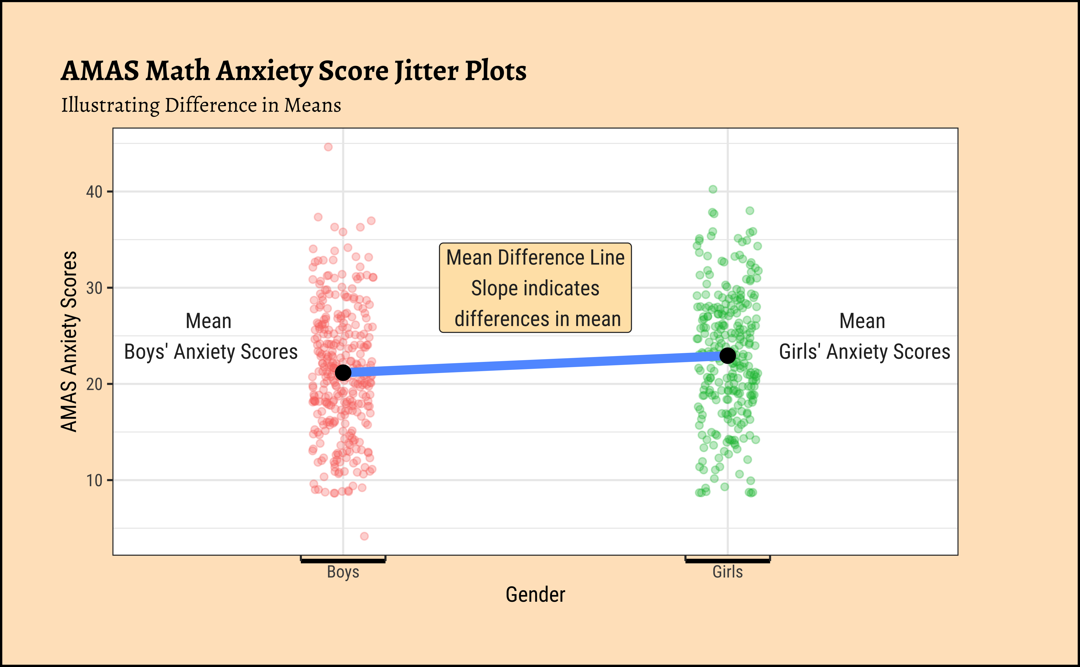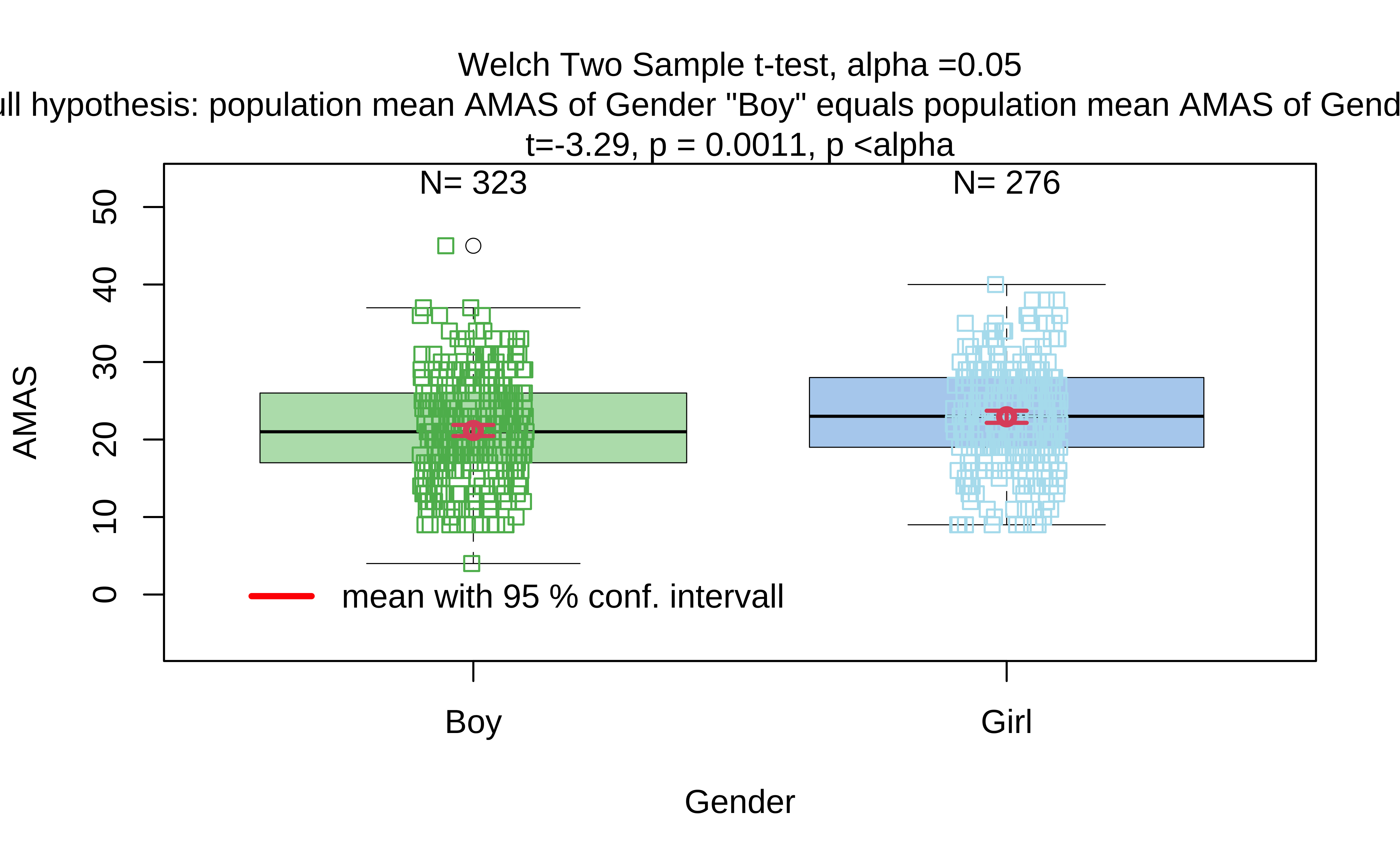 Let us look at the MathAnxiety dataset from the package resampledata. Here we have “anxiety” scores for boys and girls, for different components of mathematics.