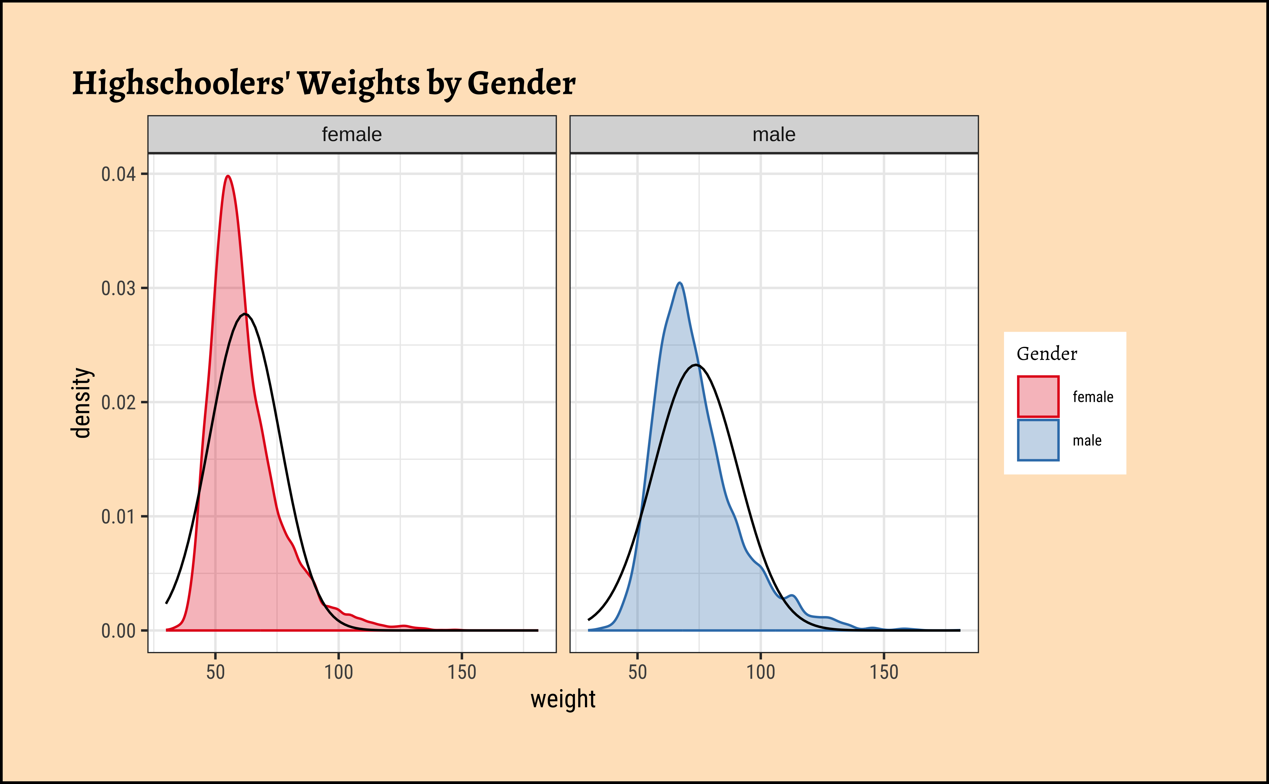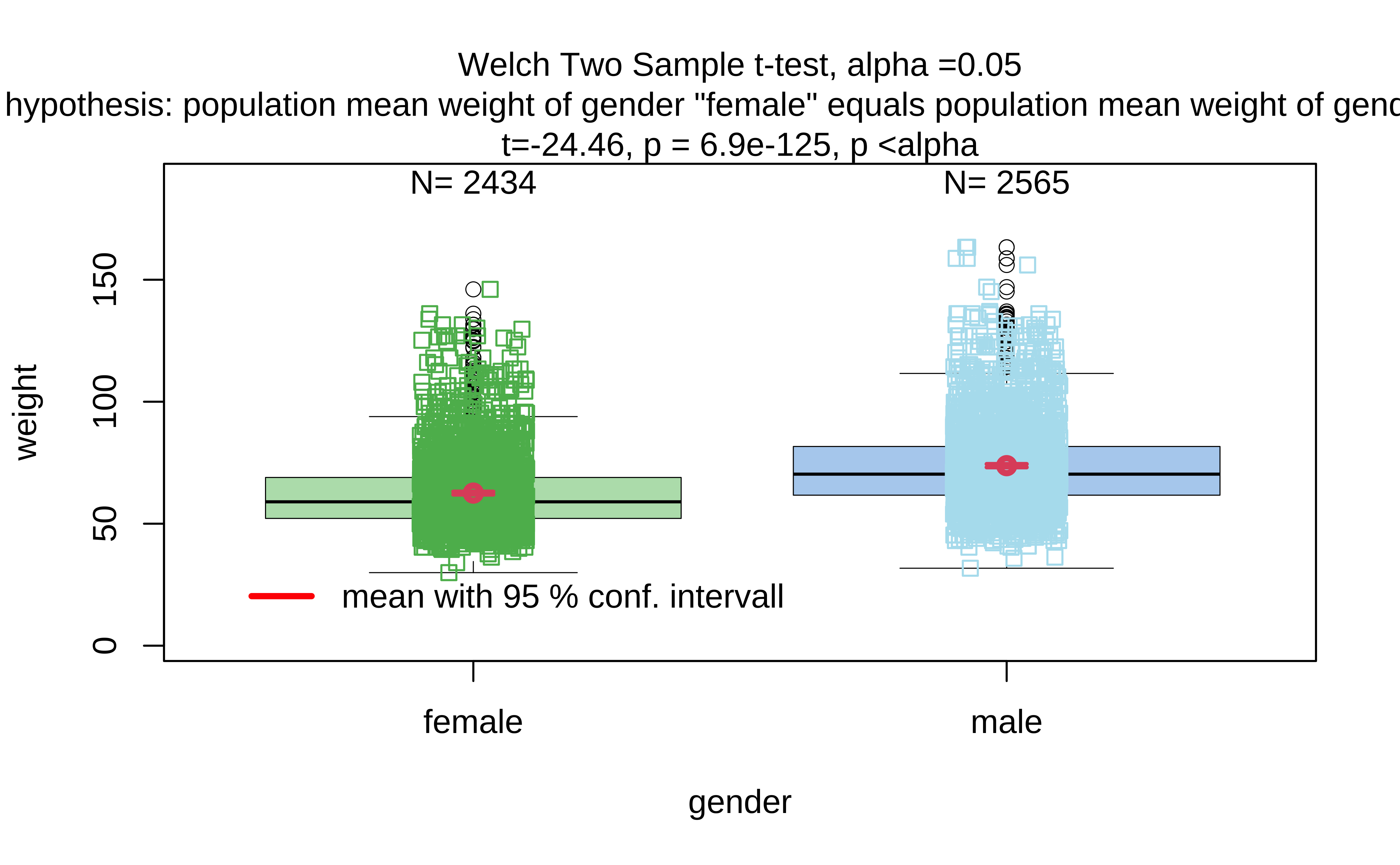 broom::tidy()The nonparametric wilcox.test also suggests that the means for weight across physical_3plus are significantly different.