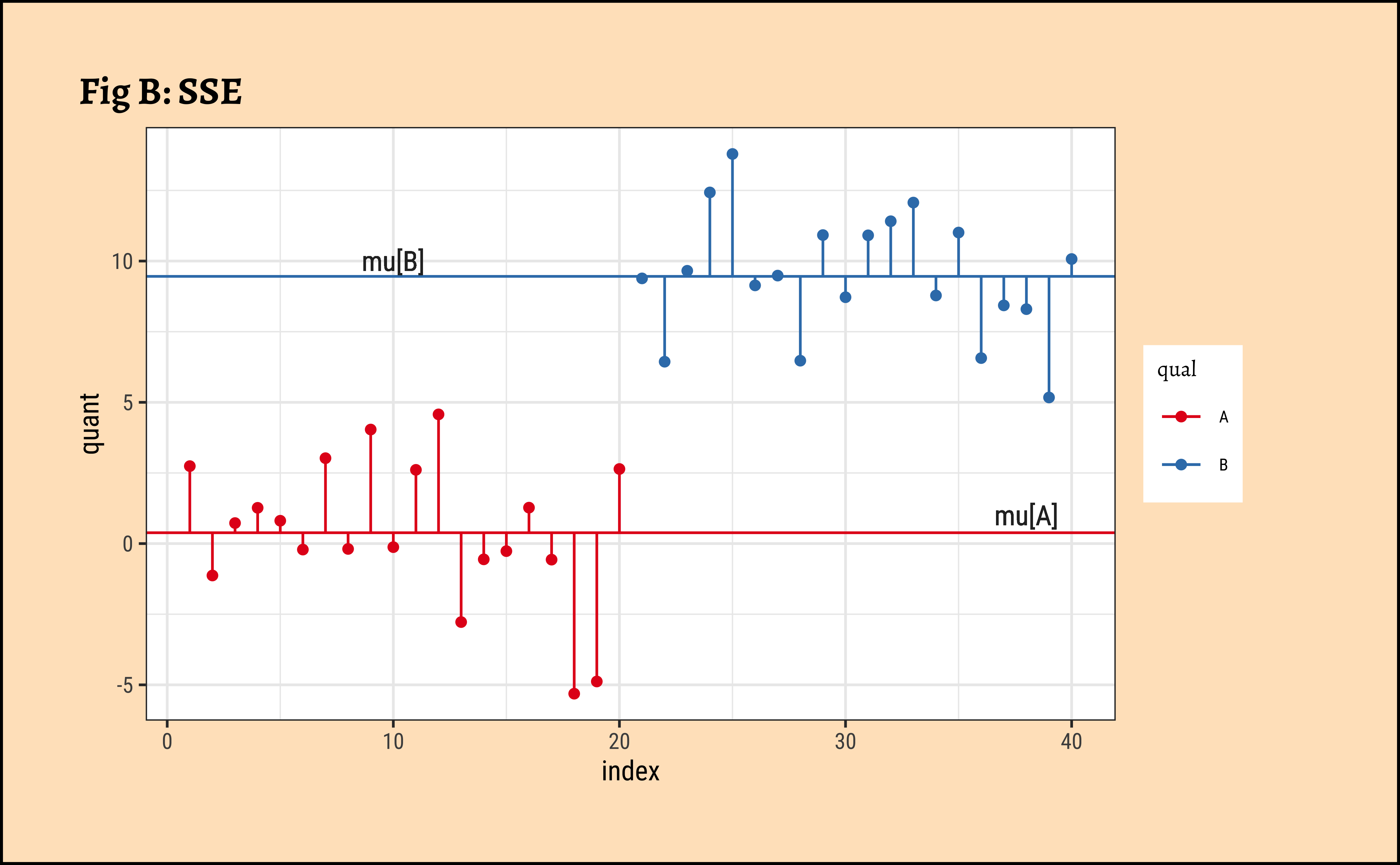 Note that when we specified our research question, we had no specific hypothesis about the means, other than that they might be different. In many situations, we may have reason to believe in the relative “ordering” of the means for different levels of the Categorical variable. The one-sided t-test is the simplest example (e.g., \(\mu_1 >= 0\) and \(\mu_1 >= \mu_2\)); this readily extends to the multi-parameter setting, where more than one inequality constraint can be imposed on the parameters (e.g., \(\mu_1 <= \mu_2 <= \mu_3\).