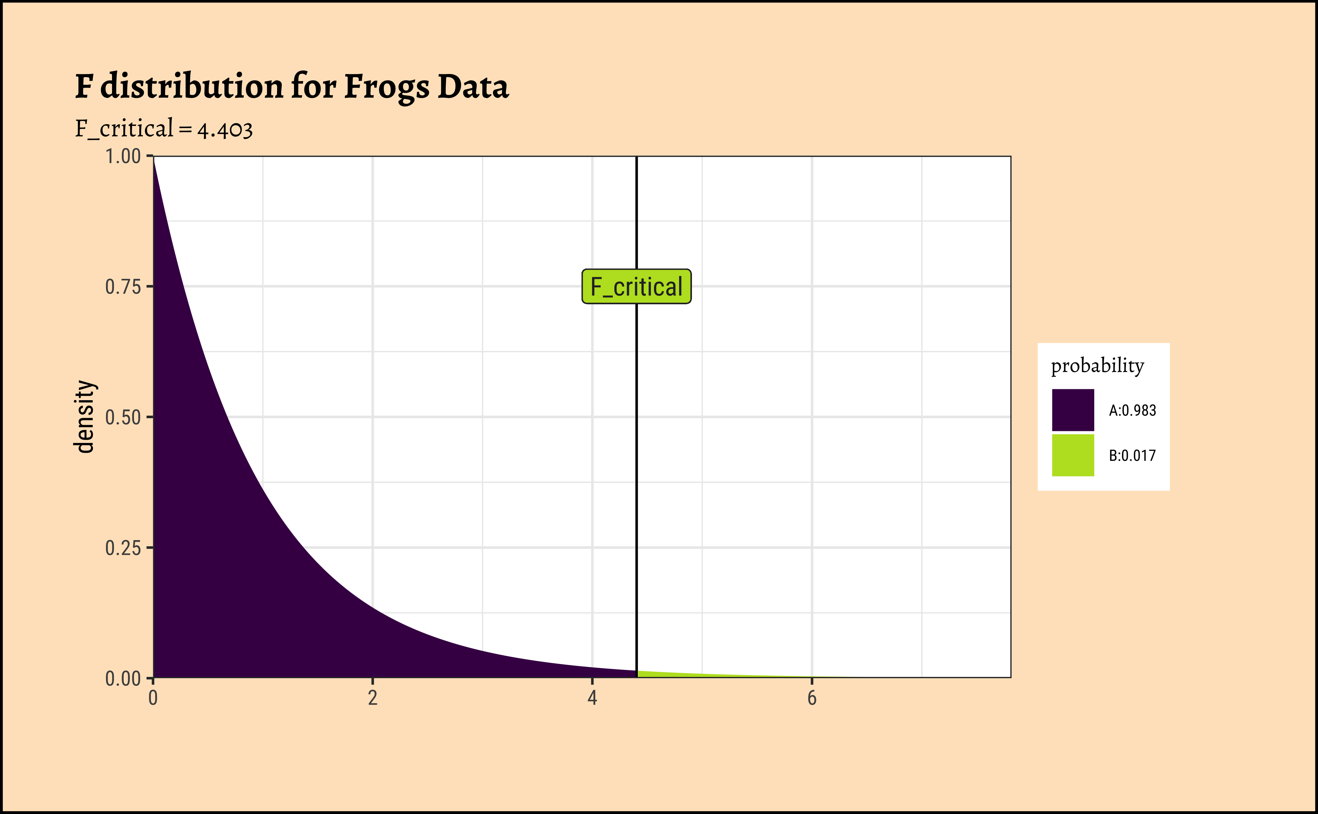 The provided ANOVA table summarizes the results of our ANOVA linear regression model, examining the effect of temperature on frog spawn time.