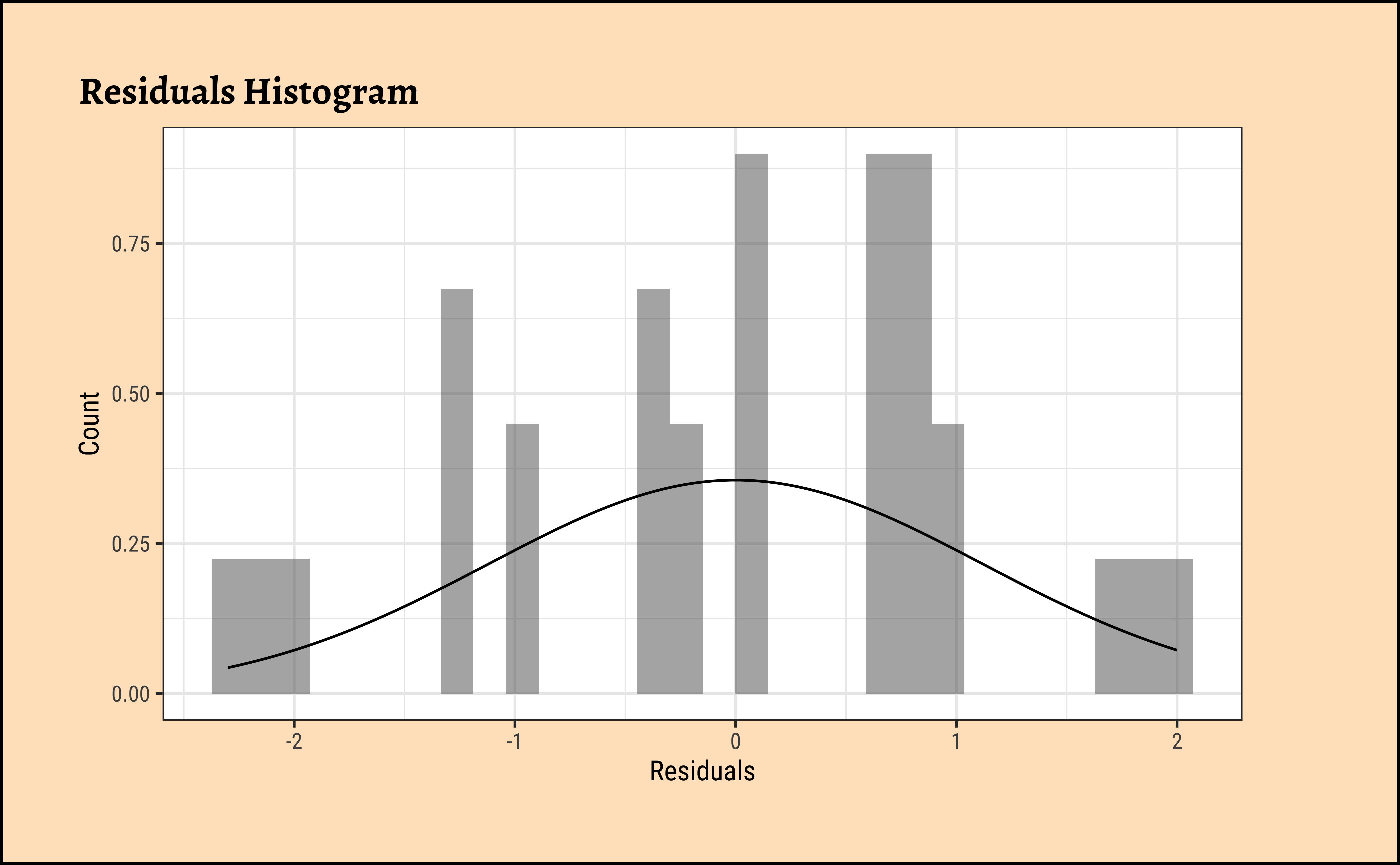 - Residuals: This value represents how much observed variance remains unexplained by our model’s inclusion of temperature differences.