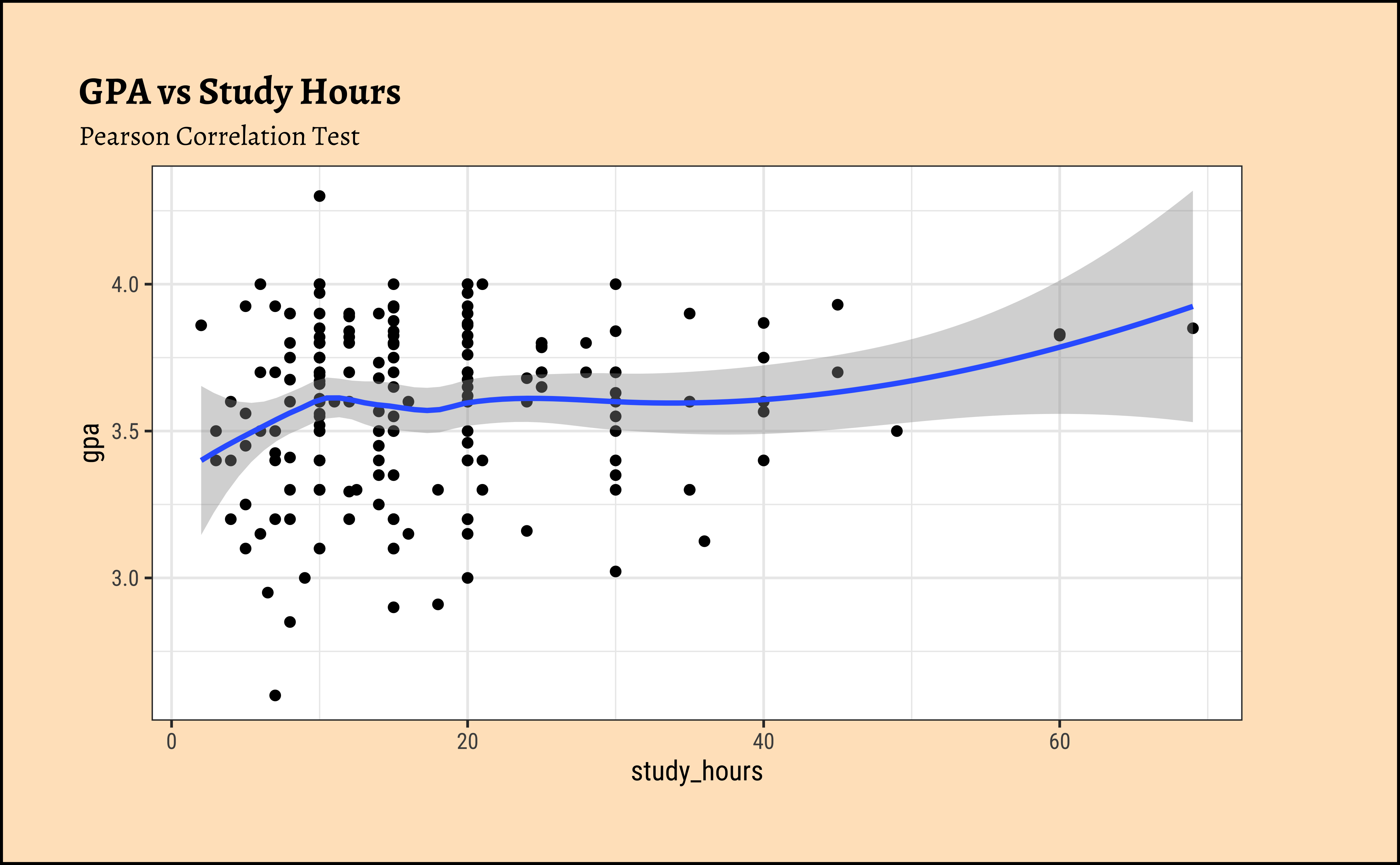 - Finally, the p-value for Pearson Correlation and that for the slope in the linear model is the same (\(0.04280043\)). Which means we cannot reject the NULL hypothesis of “no relationship” between