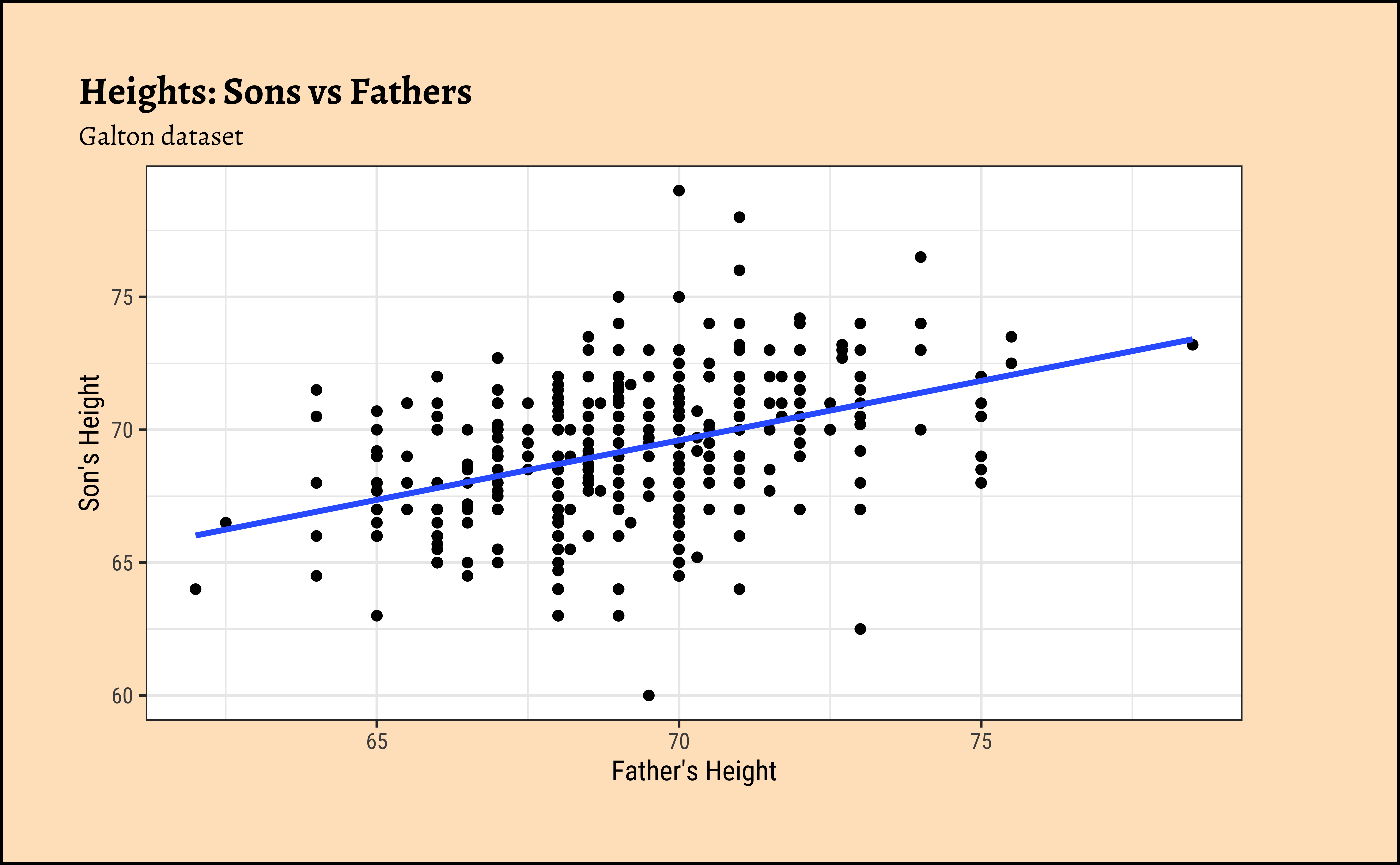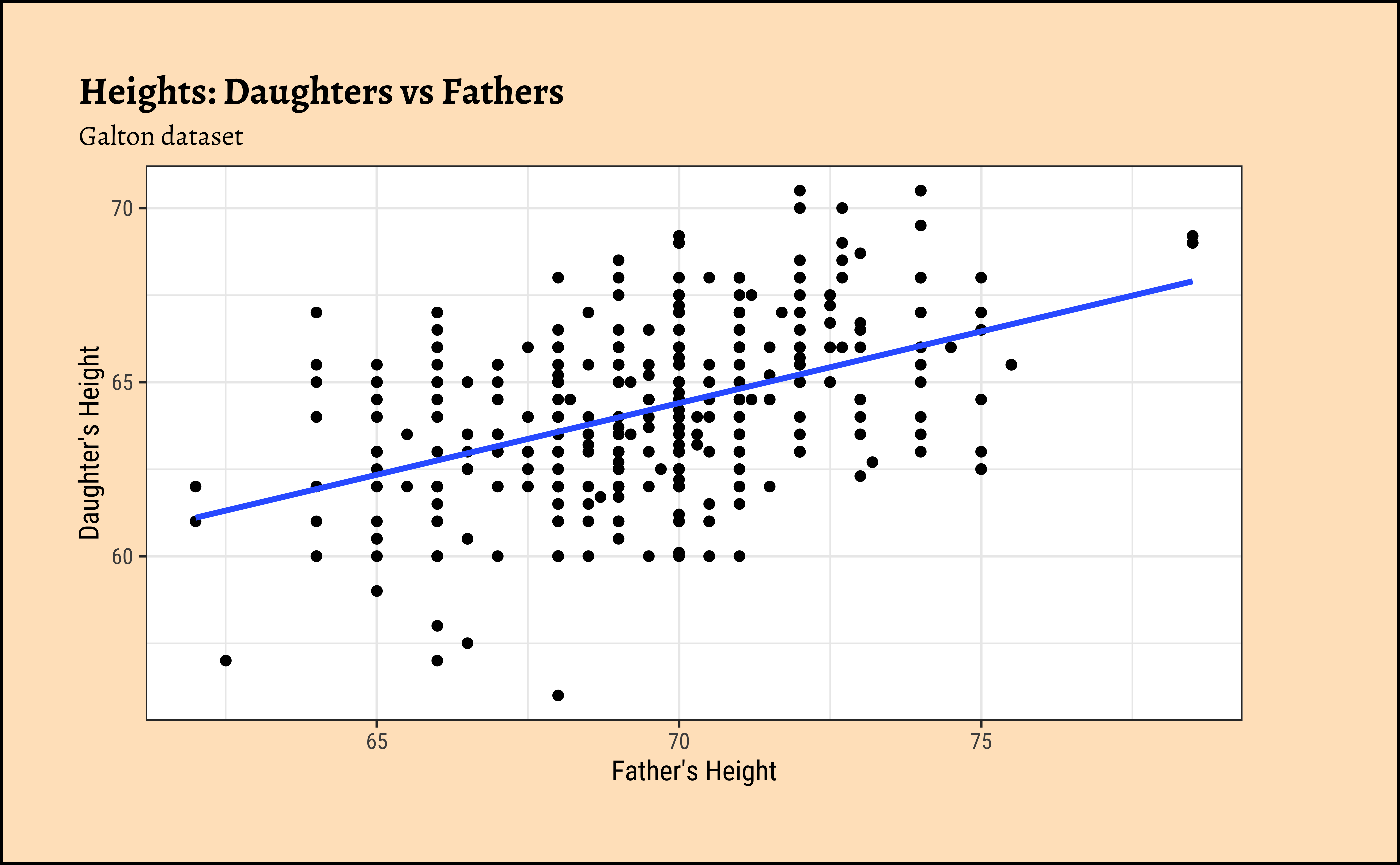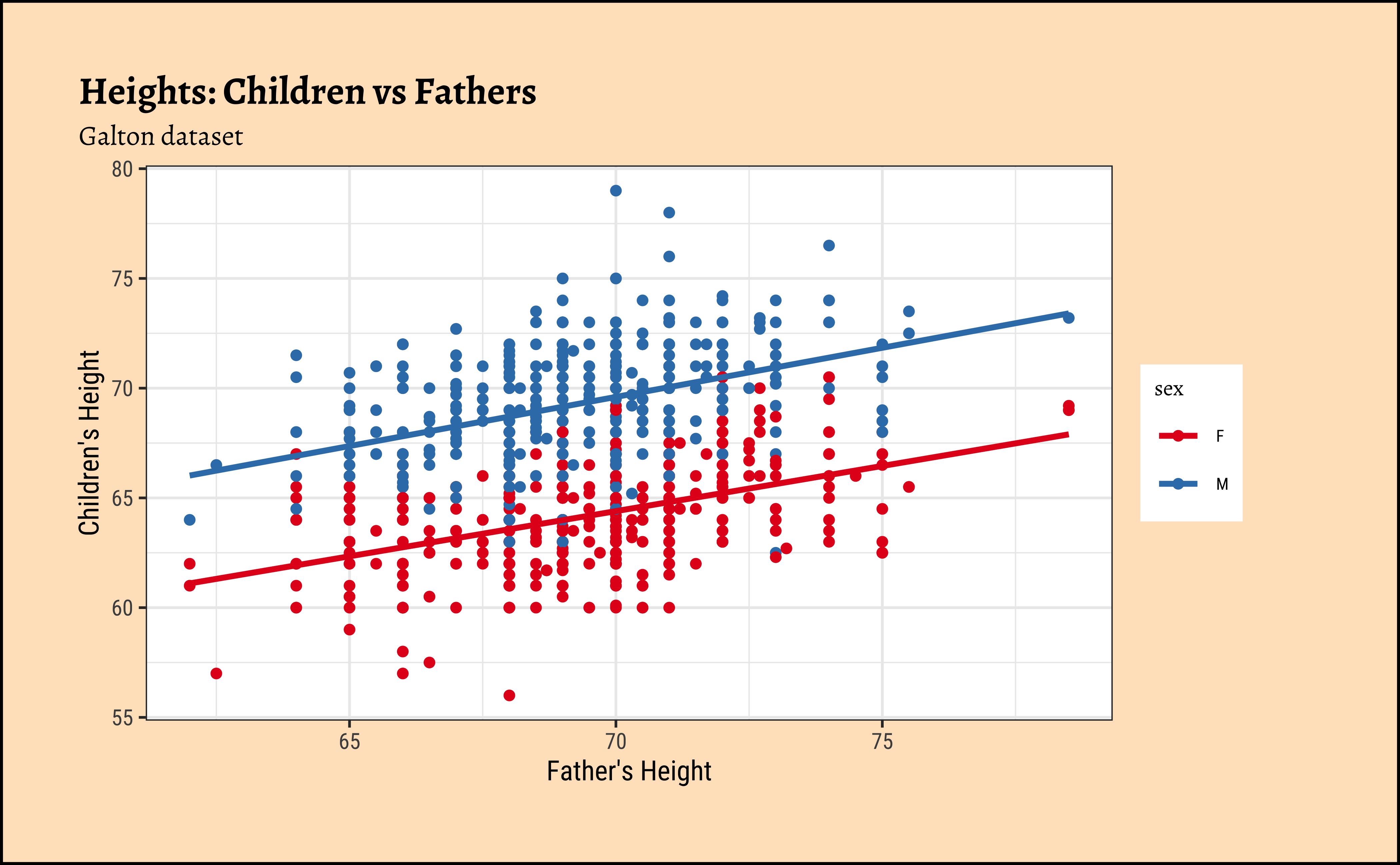 How can we start, except by using the famous Galton dataset, now part of the mosaicData package?