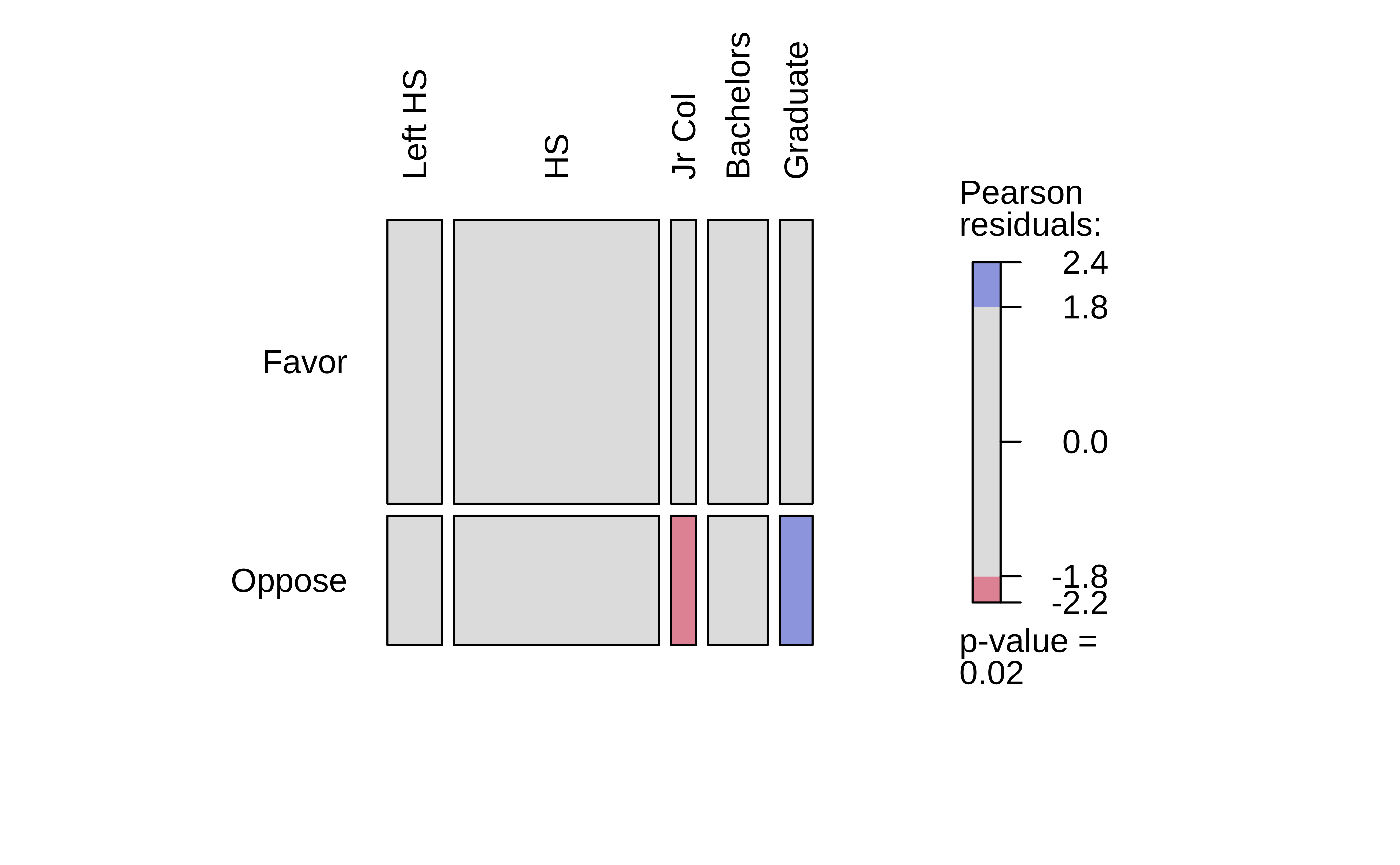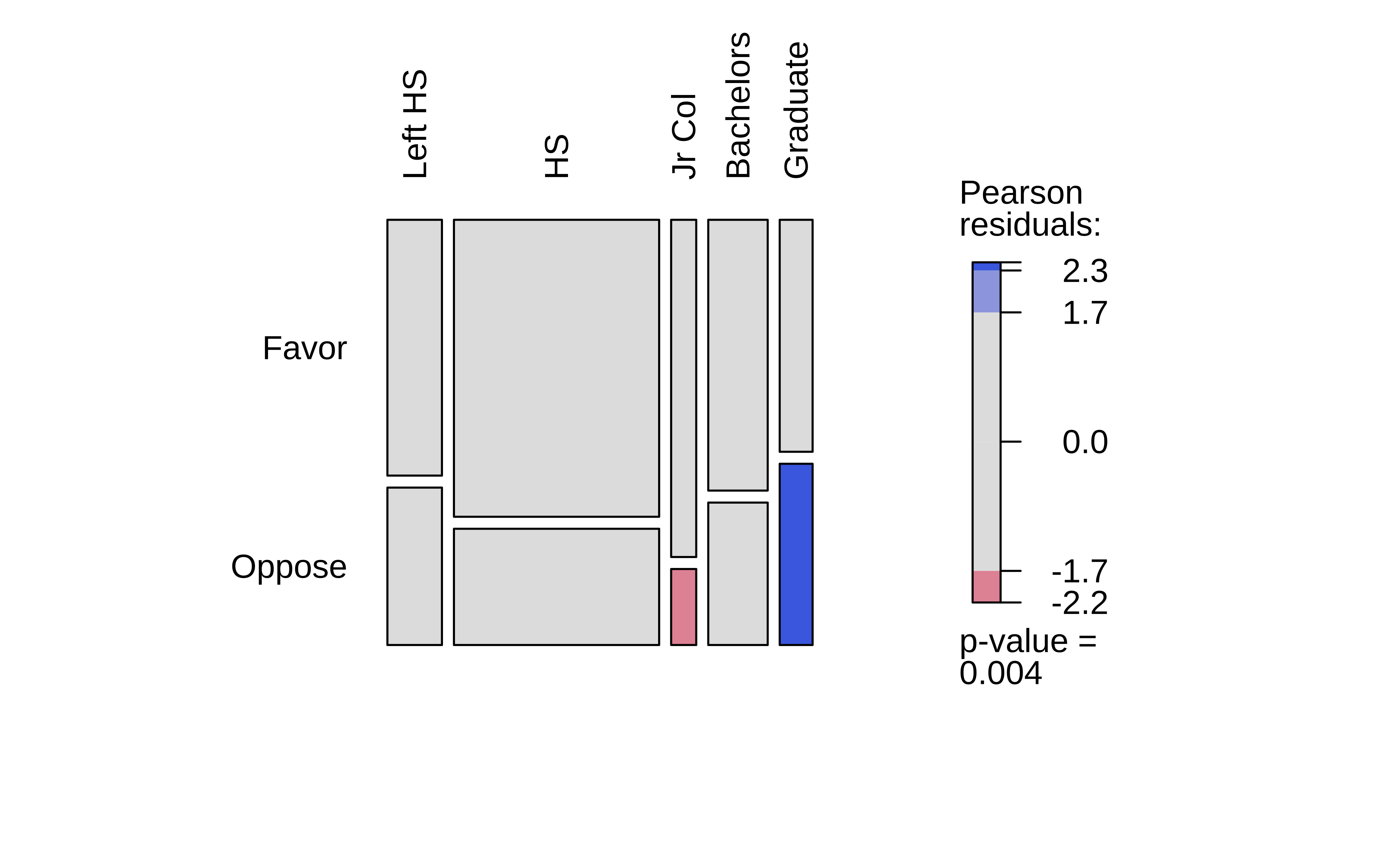 vcdTutorial: http://euclid.psych.yorku.ca/datavis.ca/courses/VCD/vcd-tutorial.pdf - Eberly College of Science, Penn State Univ. STAT 415:Introduction to Mathematical Statistics. Chapter 9.4.https://online.stat.psu.edu/stat415/lesson/9/9.4
