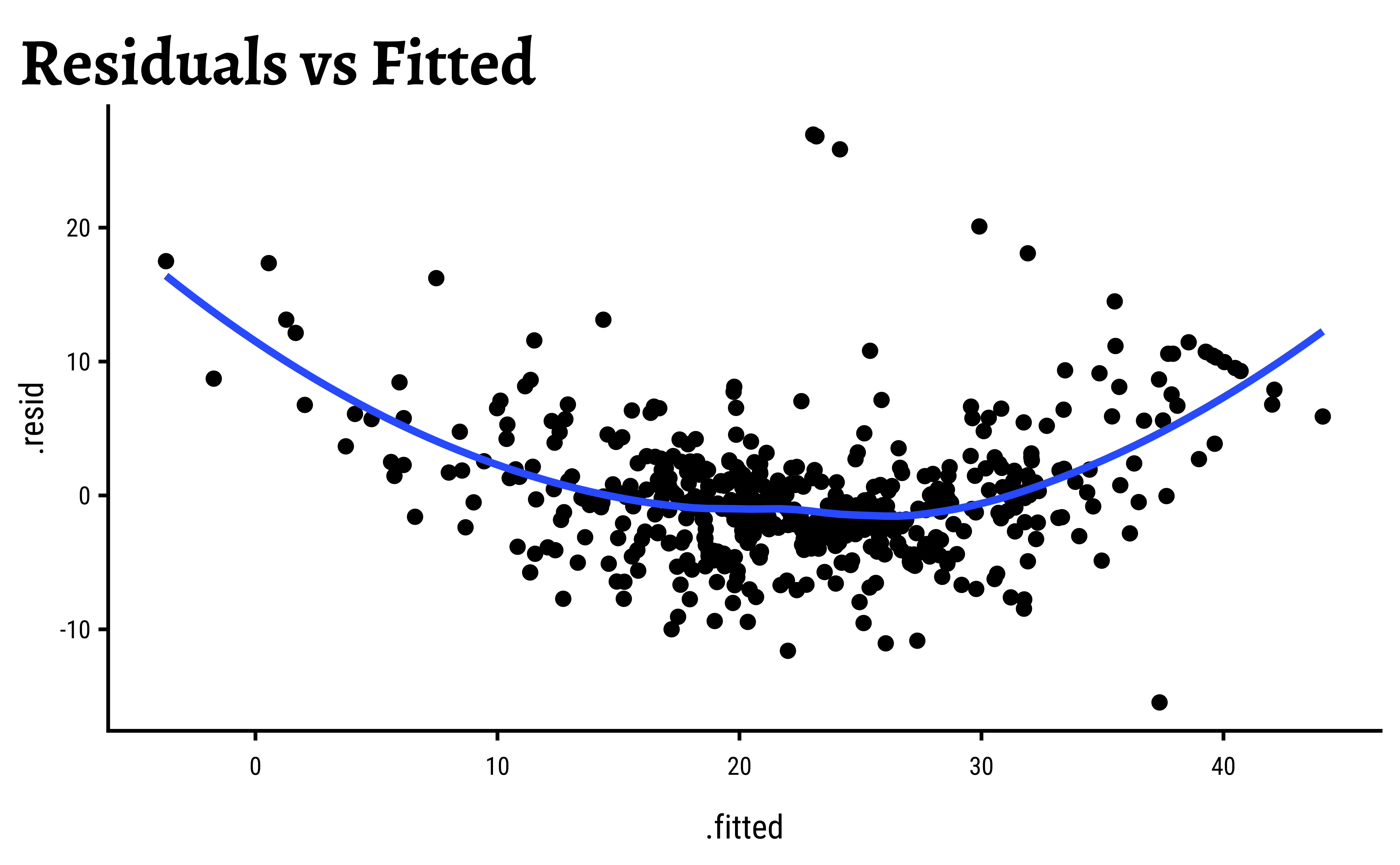 gf_point(.resid ~ .fitted, title = "Residuals vs Fitted") %>%