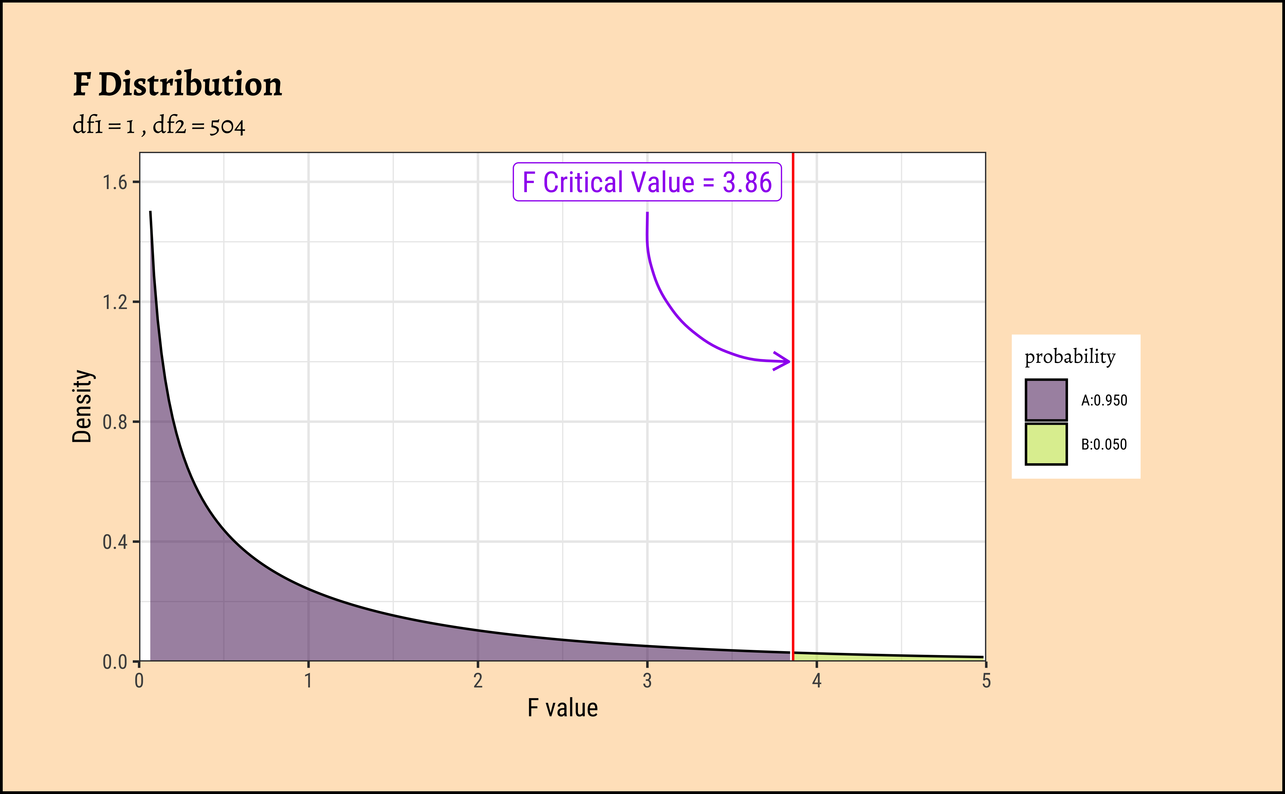 - We then find probability p(\(\beta_1 = Estimated\ Value\) when the NULL Hypothesis is assumed TRUE). This is the p-value. If that probability is p>=0.05, we say we “cannot reject” \(H_0\) and there is unlikely to be significant linear relationship.