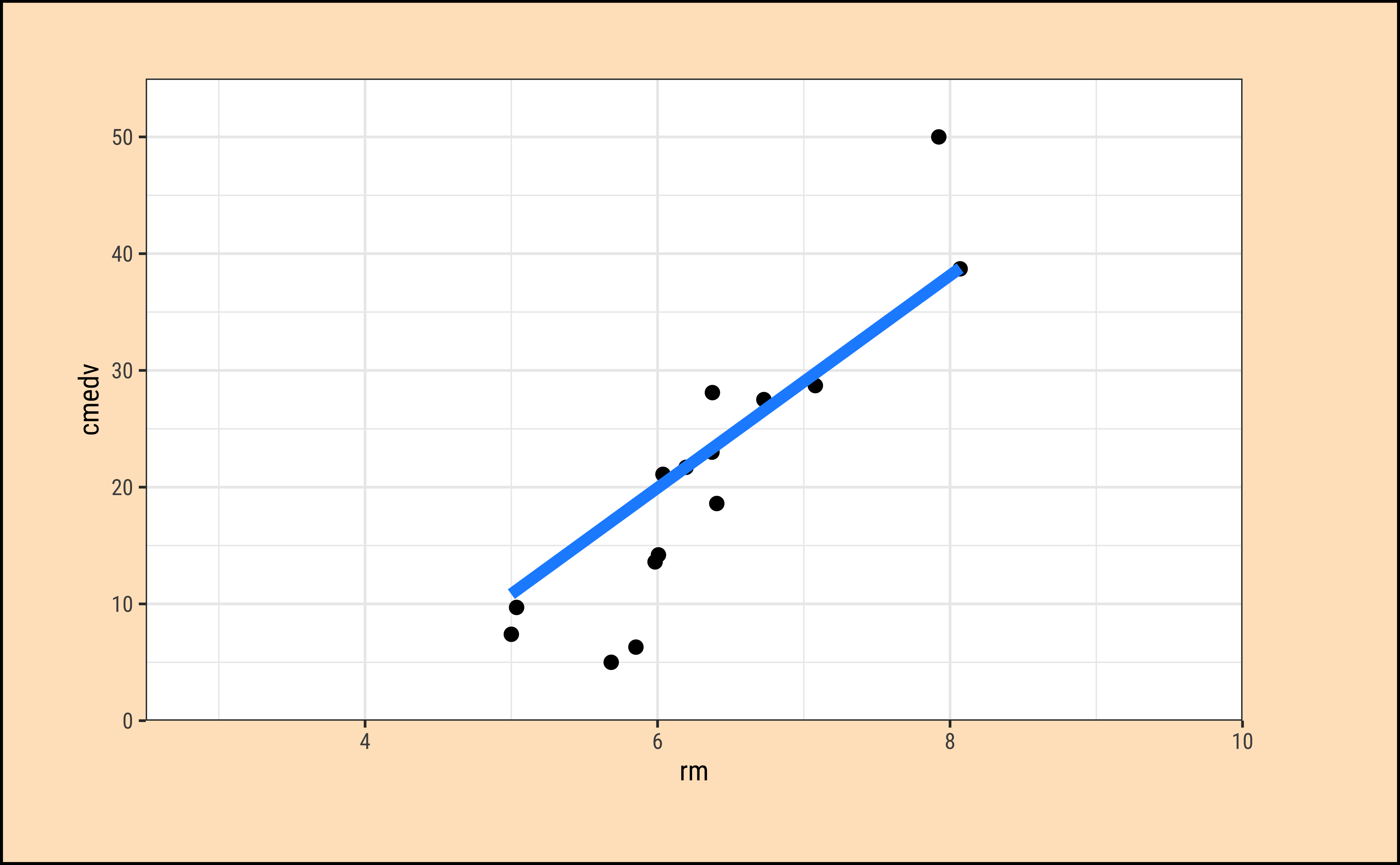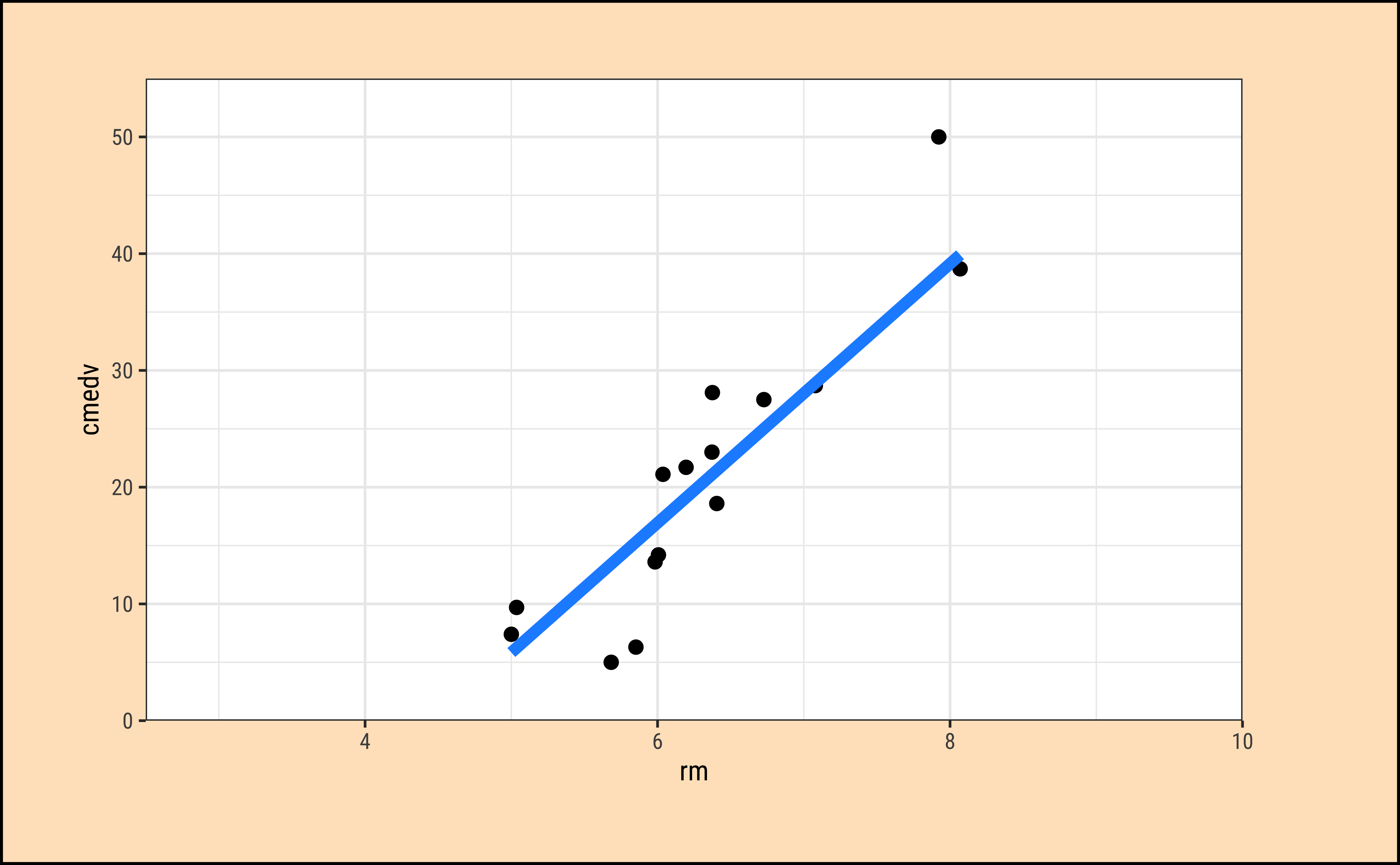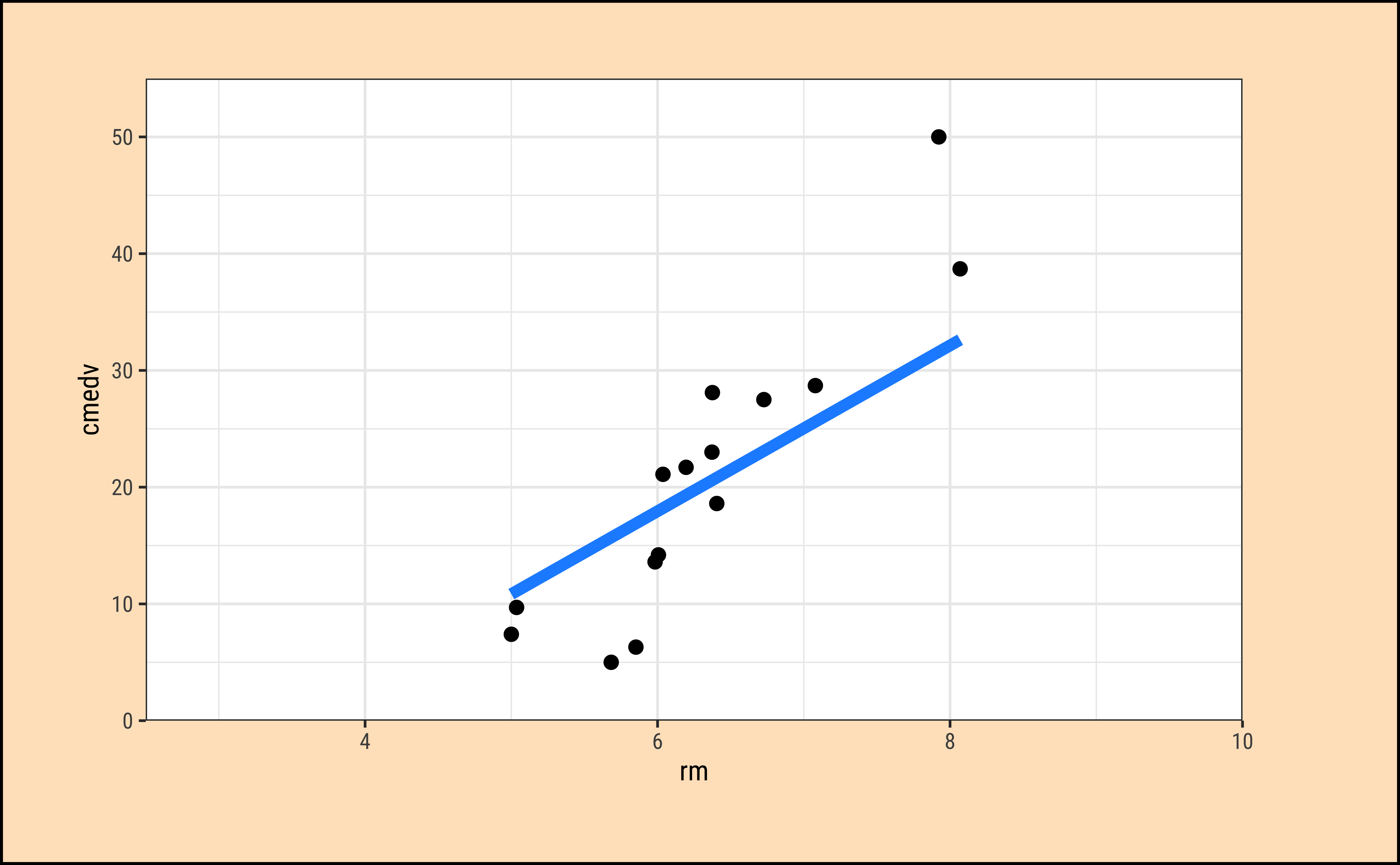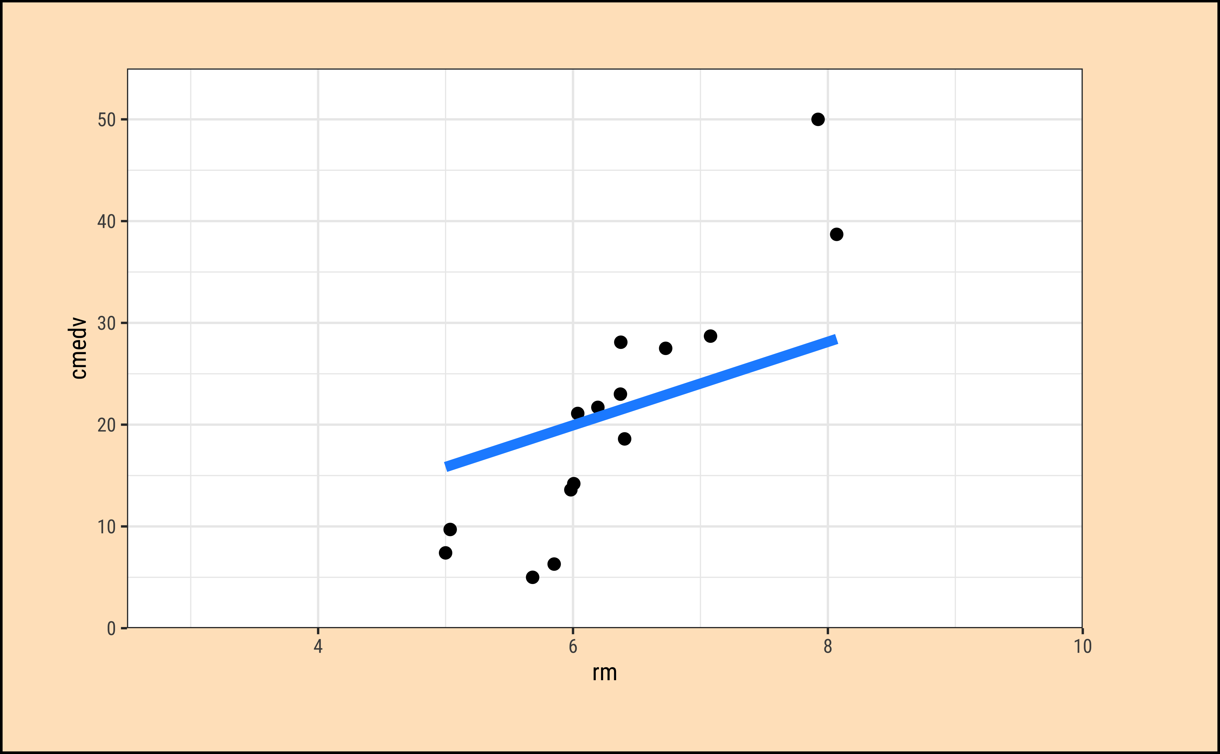 Apropos, the r-squared for a model lm(cmedv ~ rm^2) shows some improvement: