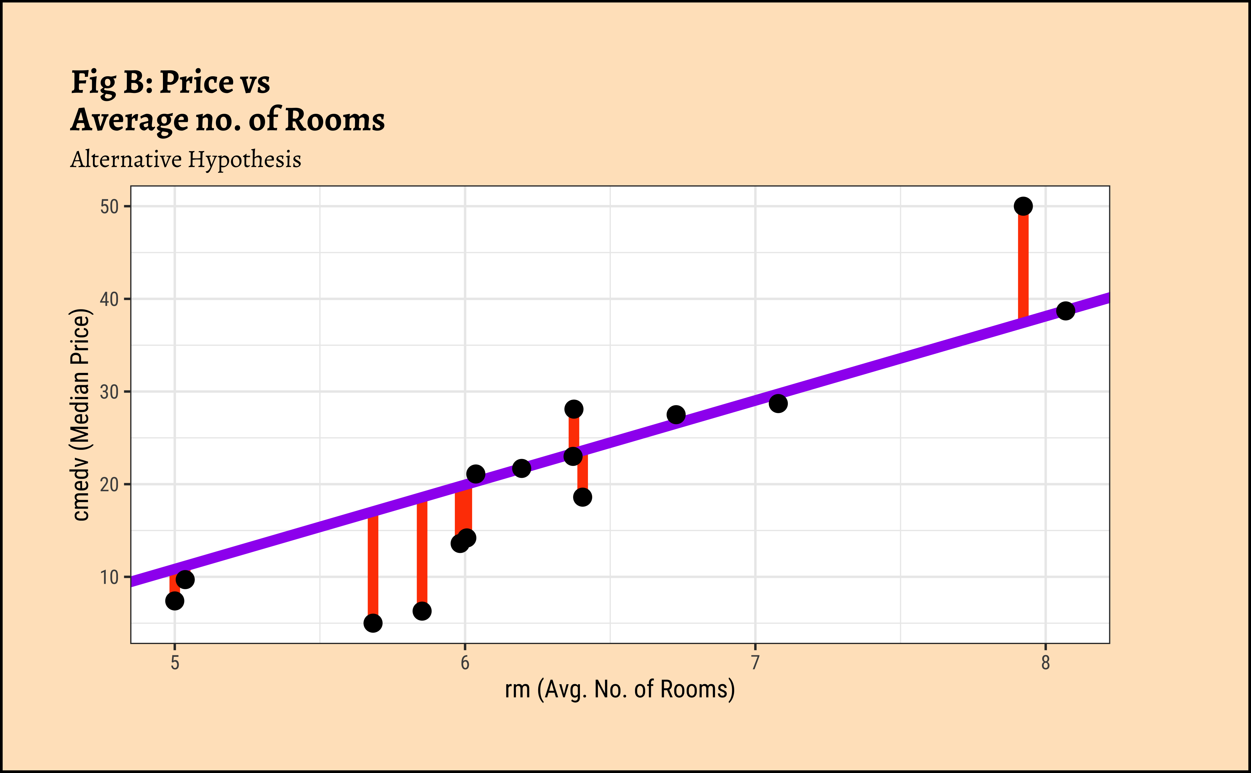 The net area of all the shaded squares is minimized in the calculation of \(\beta_0\) and \(\beta_1\). As per Lindoloev, many statistical tests, going from one-sample t-tests to two-way ANOVA, are special cases of this system. Also see Jeffrey Walker “A linear-model-can-be-fit-to-data-with-continuous-discrete-or-categorical-x-variables”.