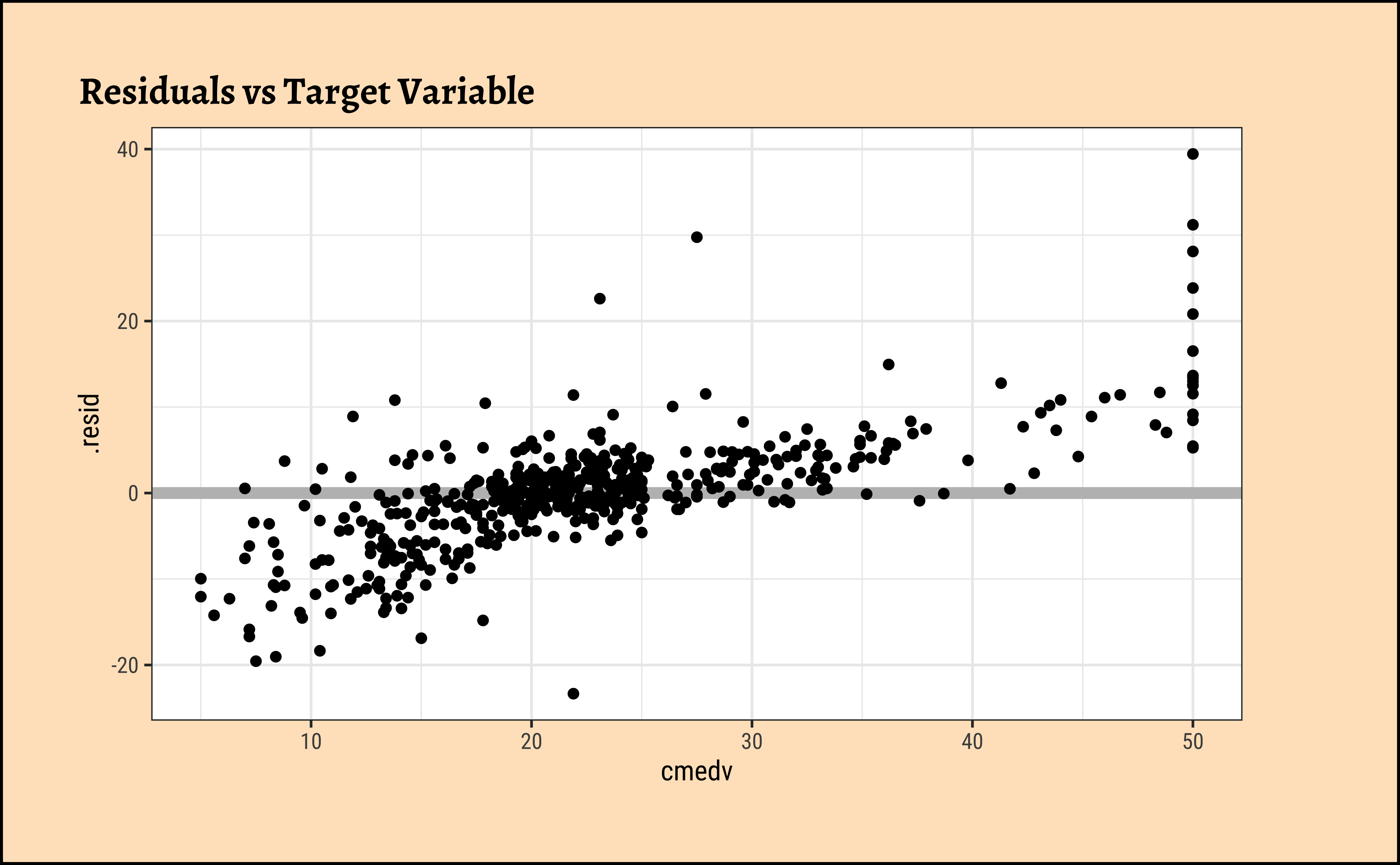 gf_point(.resid ~ cmedv, title = "Residuals vs Target Variable")
