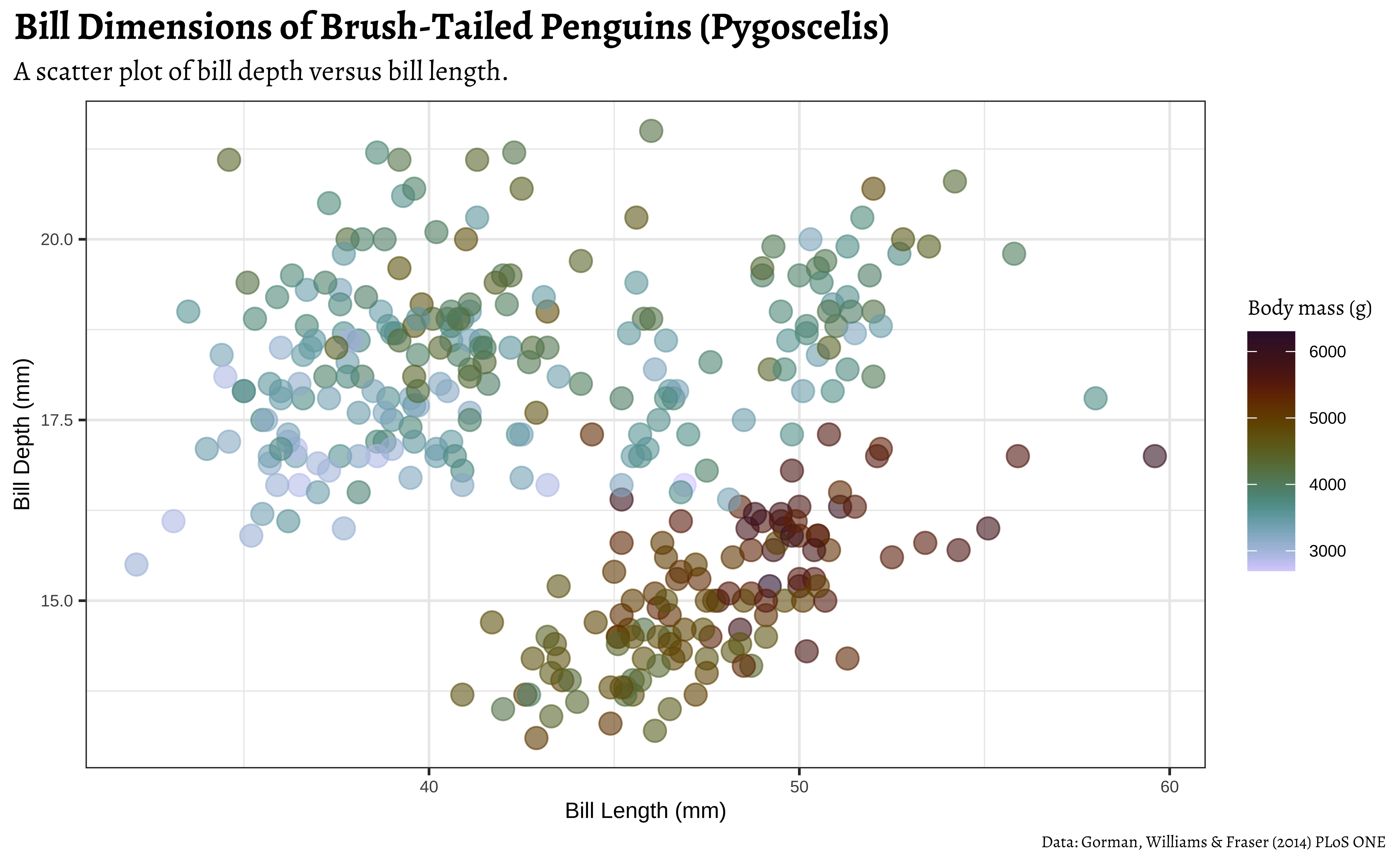 subtitle = "A scatter plot of bill depth versus bill length.",