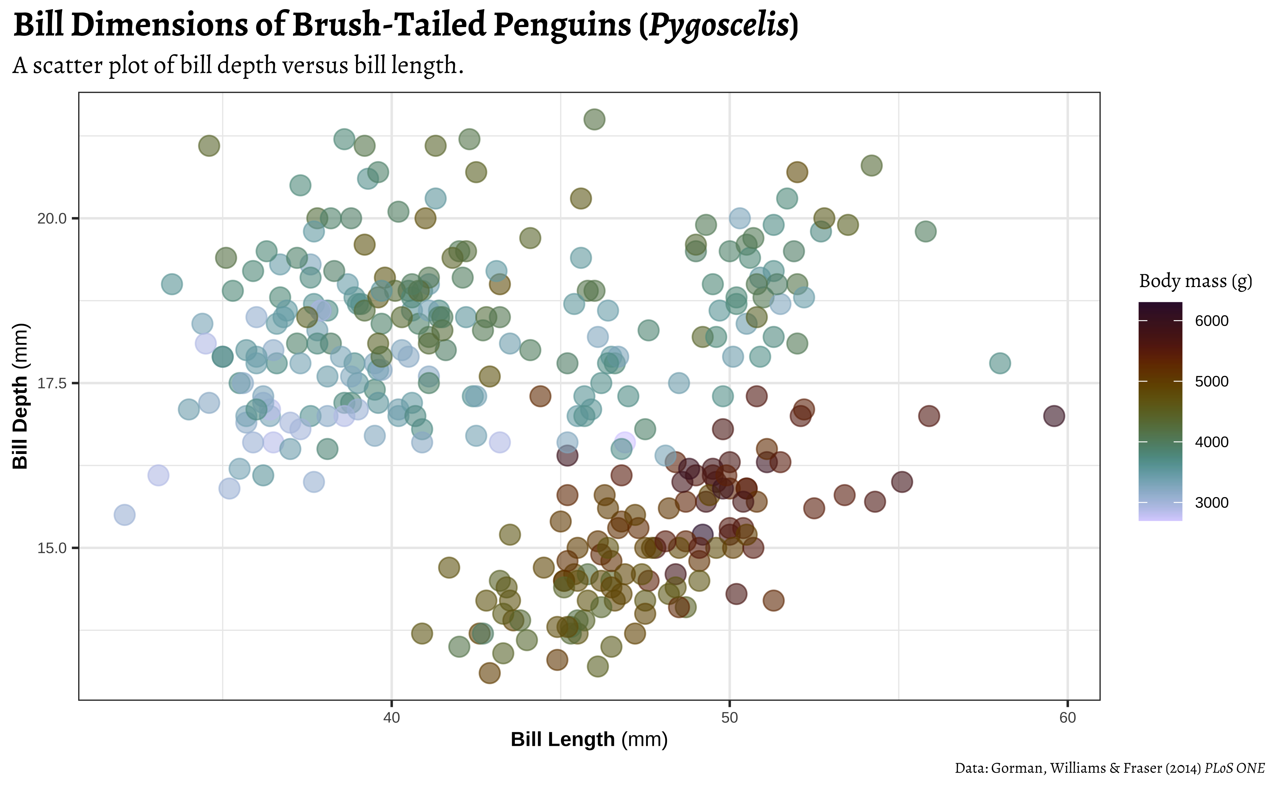 geom_point(aes(color = body_mass), alpha = .6, size = 3.5) +