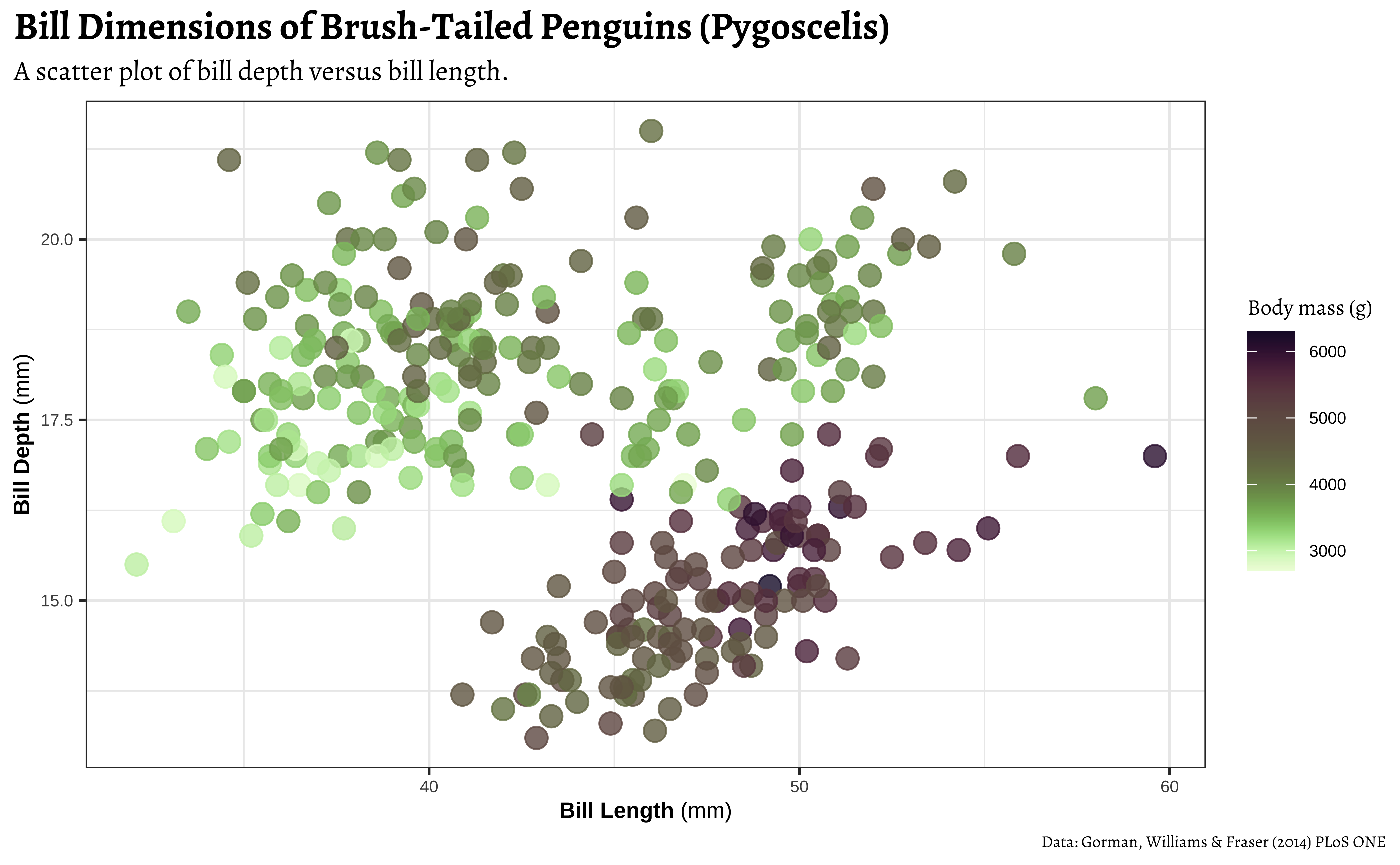 subtitle = "A scatter plot of bill depth versus bill length.",