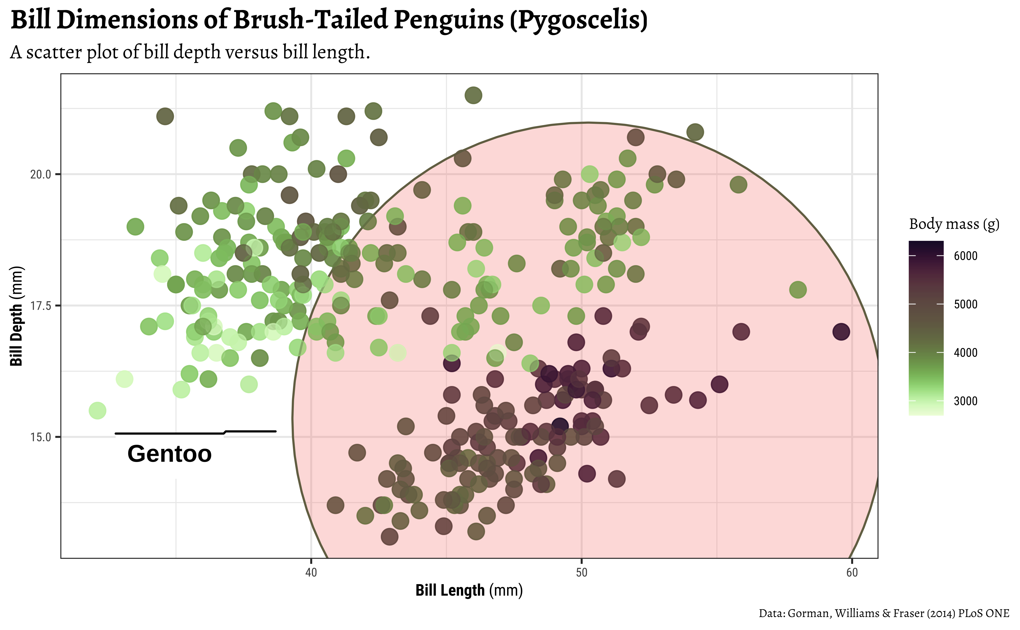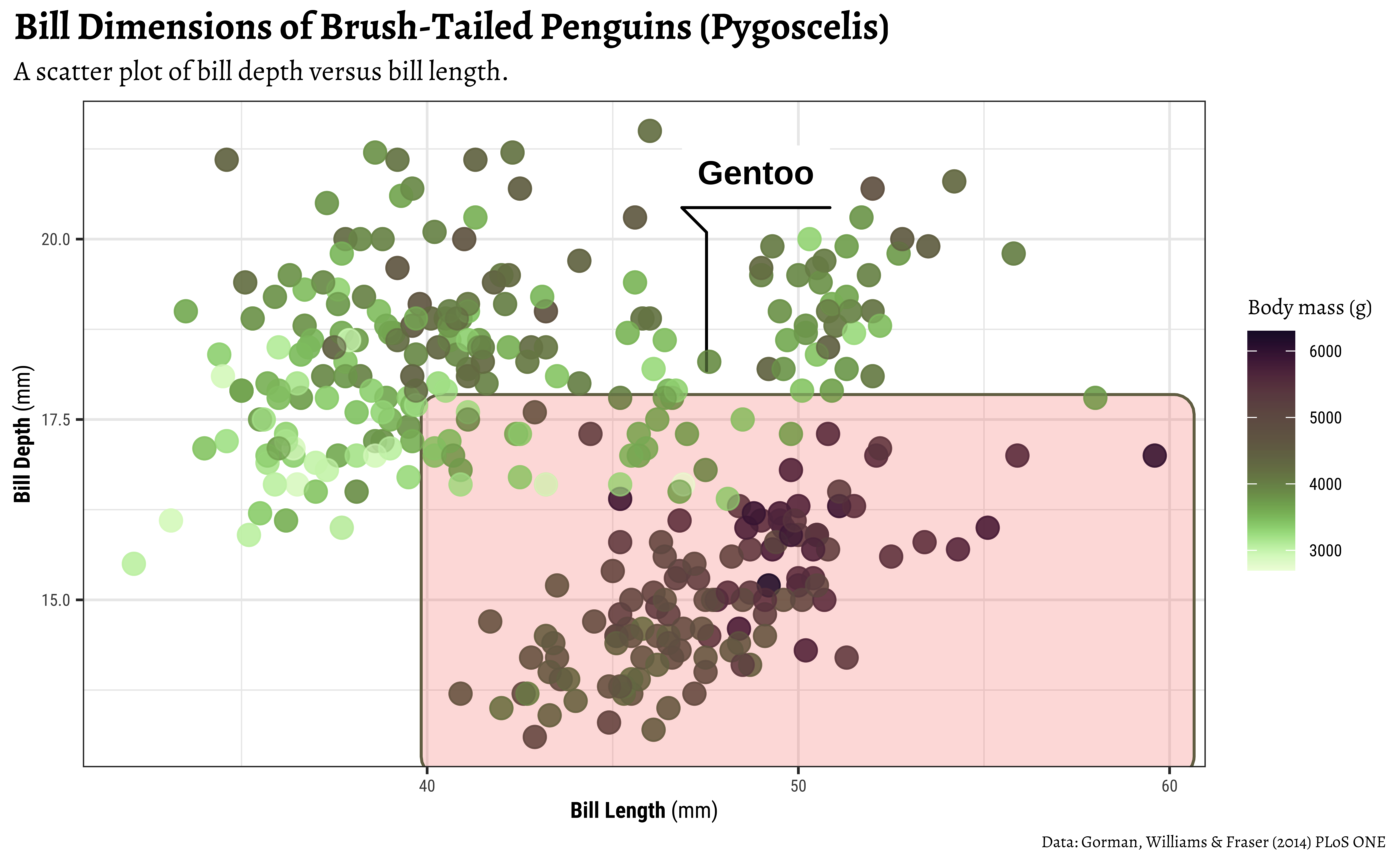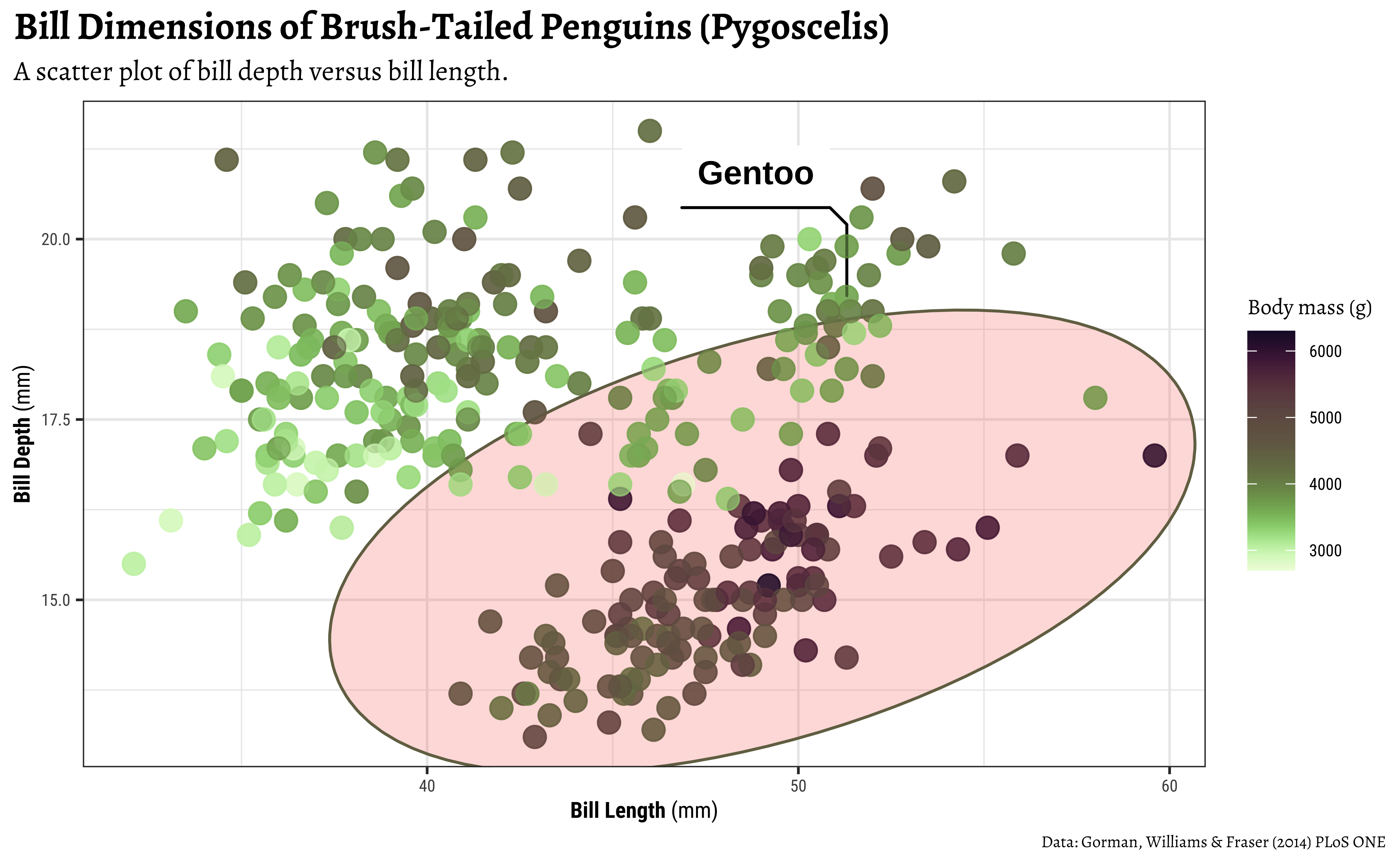 subtitle = "A scatter plot of bill depth versus bill length.",