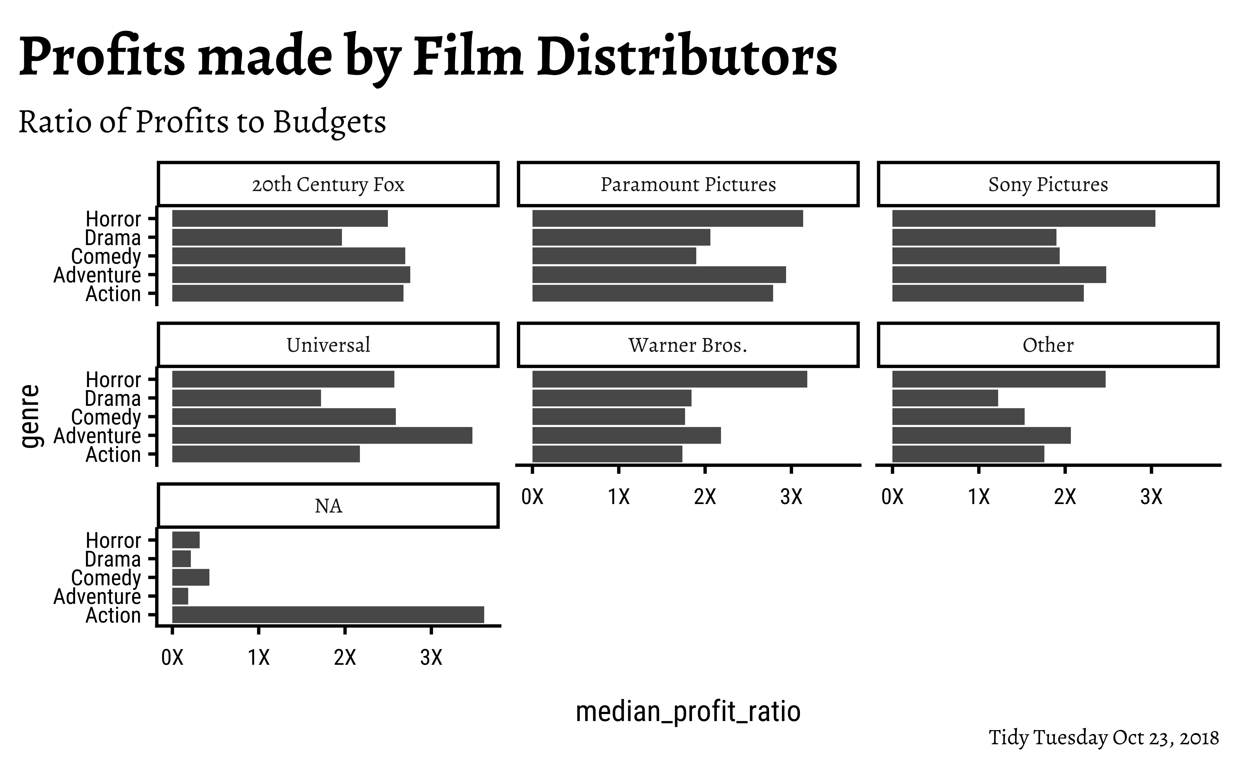 • If you were to invest in movie production ventures, which are the two best genres that you might decide to invest in?