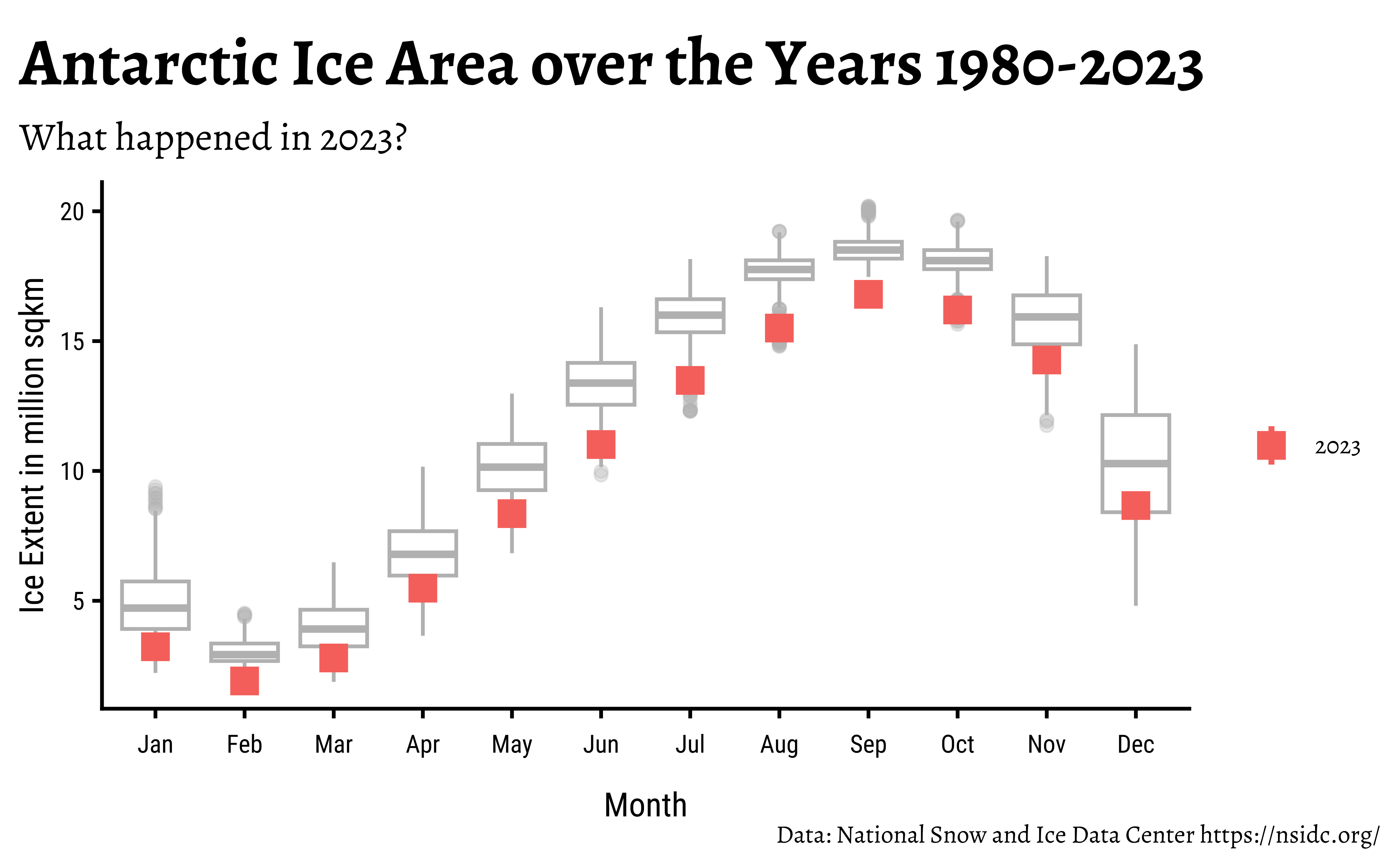 The extent of Antarctic Sea Ice over time is monitored by the National Snow and Ice Data Center https://nsidc.org/.