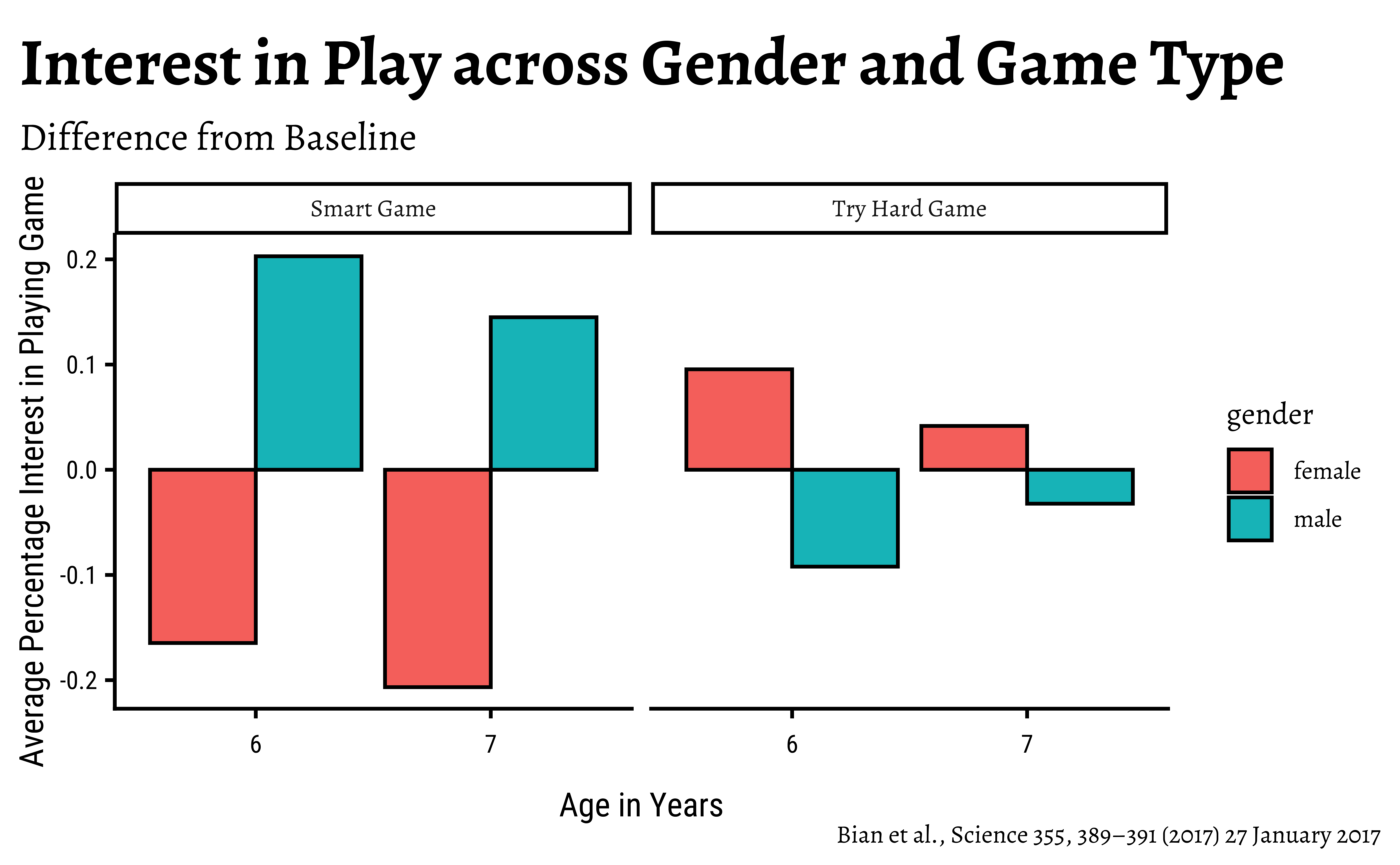 Lin Bian et al. ,Gender stereotypes about intellectual ability emerge early and influence children’s interests. Science 355,389-391(2017).DOI:10.1126/science.aah6524. This very short and crisp paper is available here.