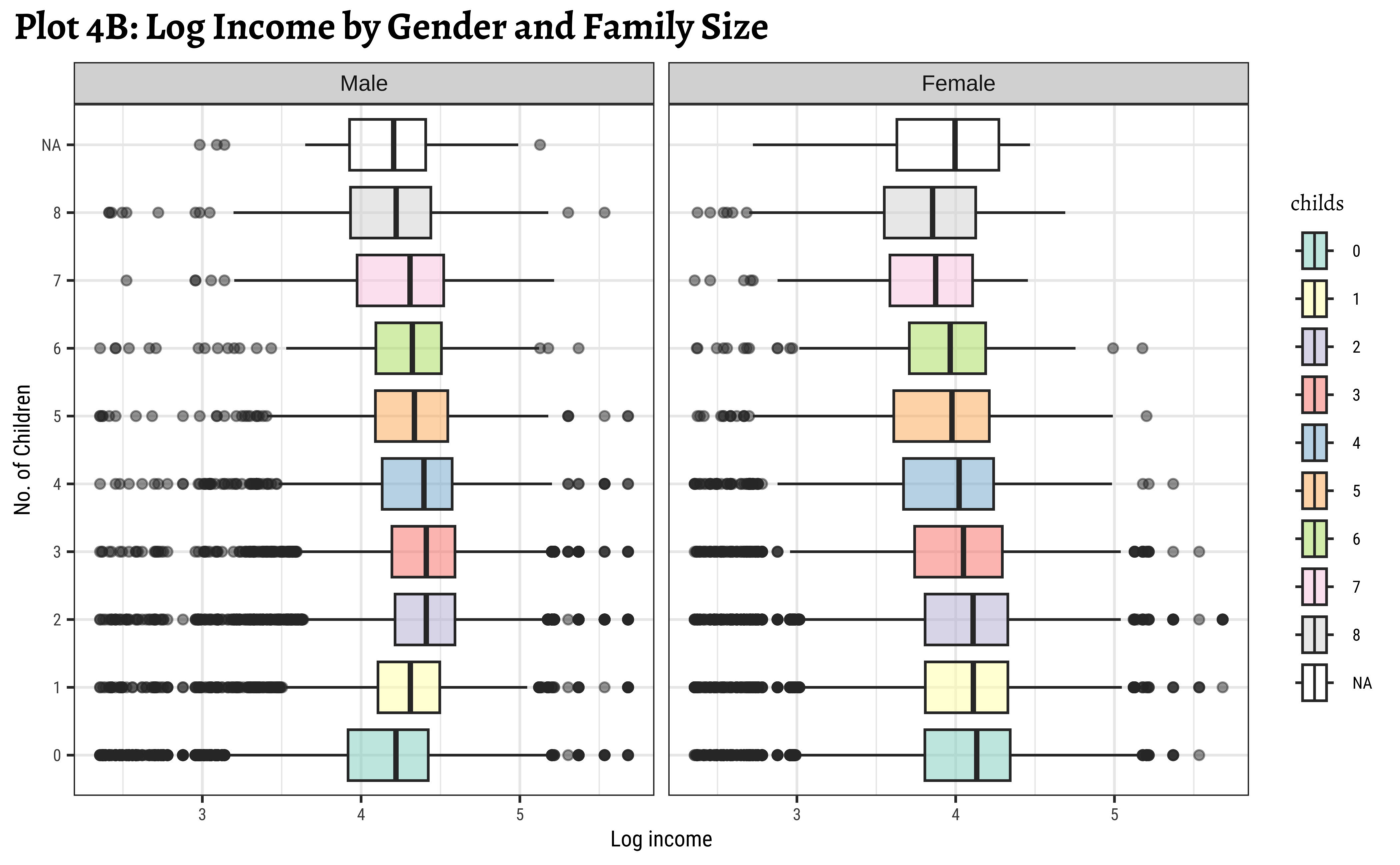 title = "Plot 4B: Log Income by Gender and Family Size",