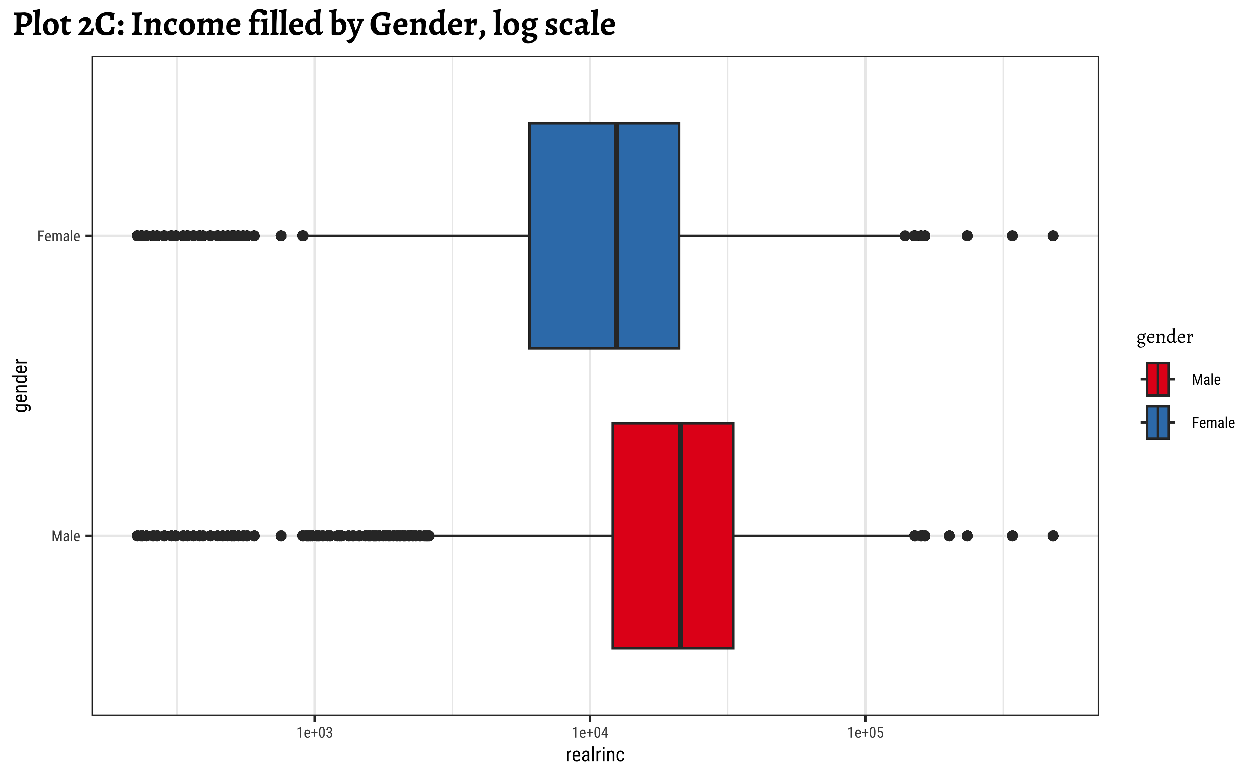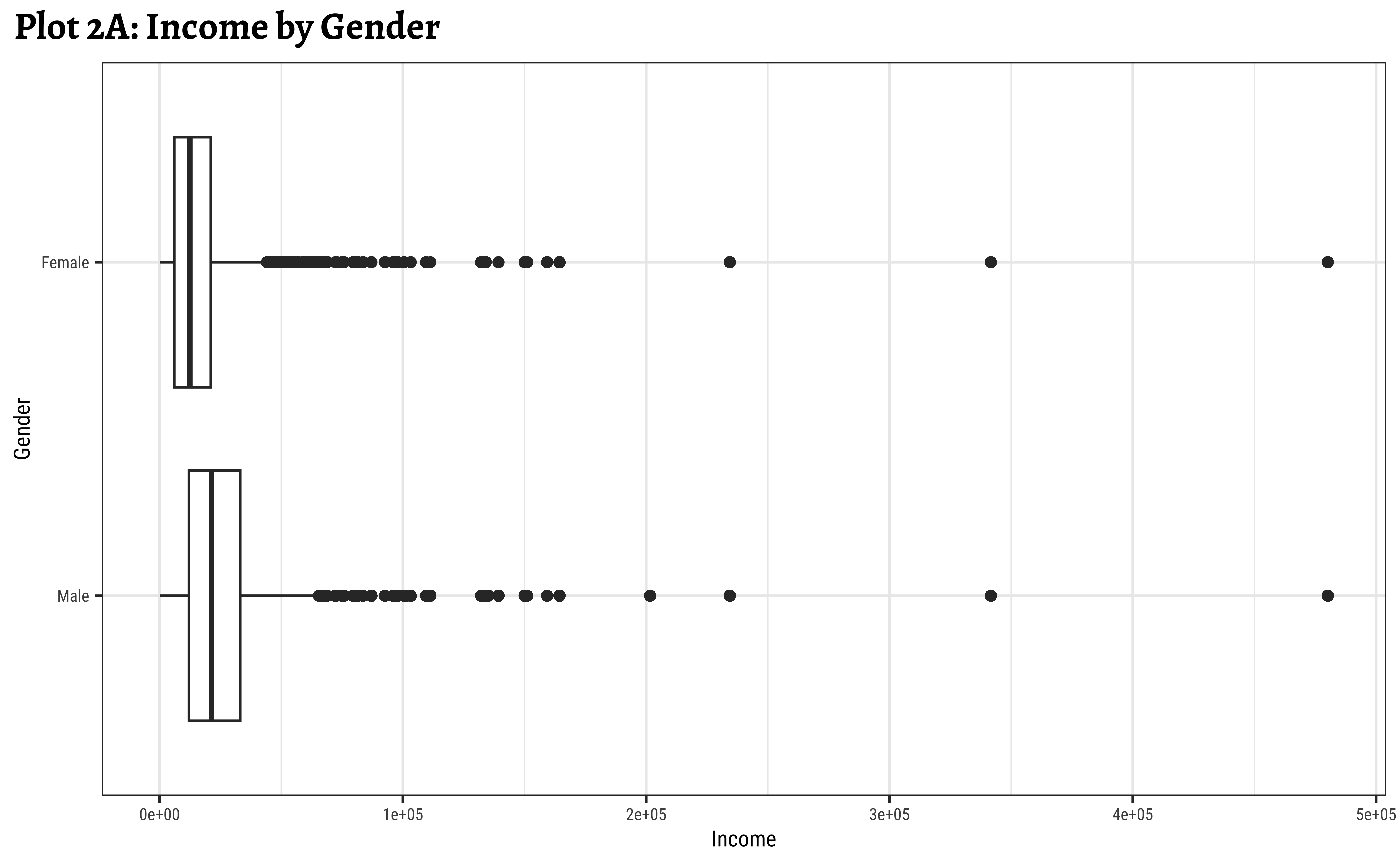 • How do box plots help visualize and understand the distribution of income across different groups?