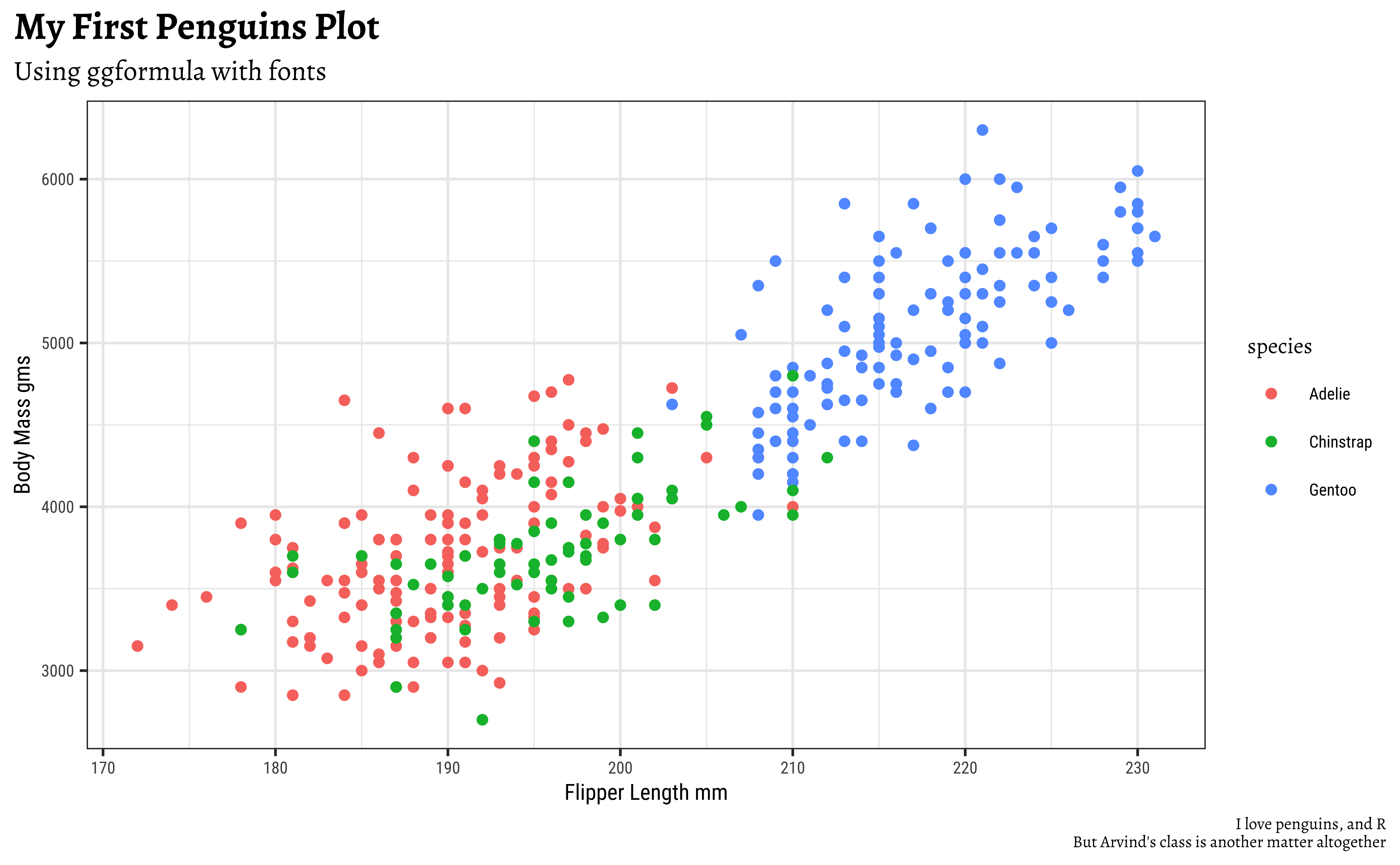caption = "I love penguins, and R\n But Arvind's class is another matter altogether")