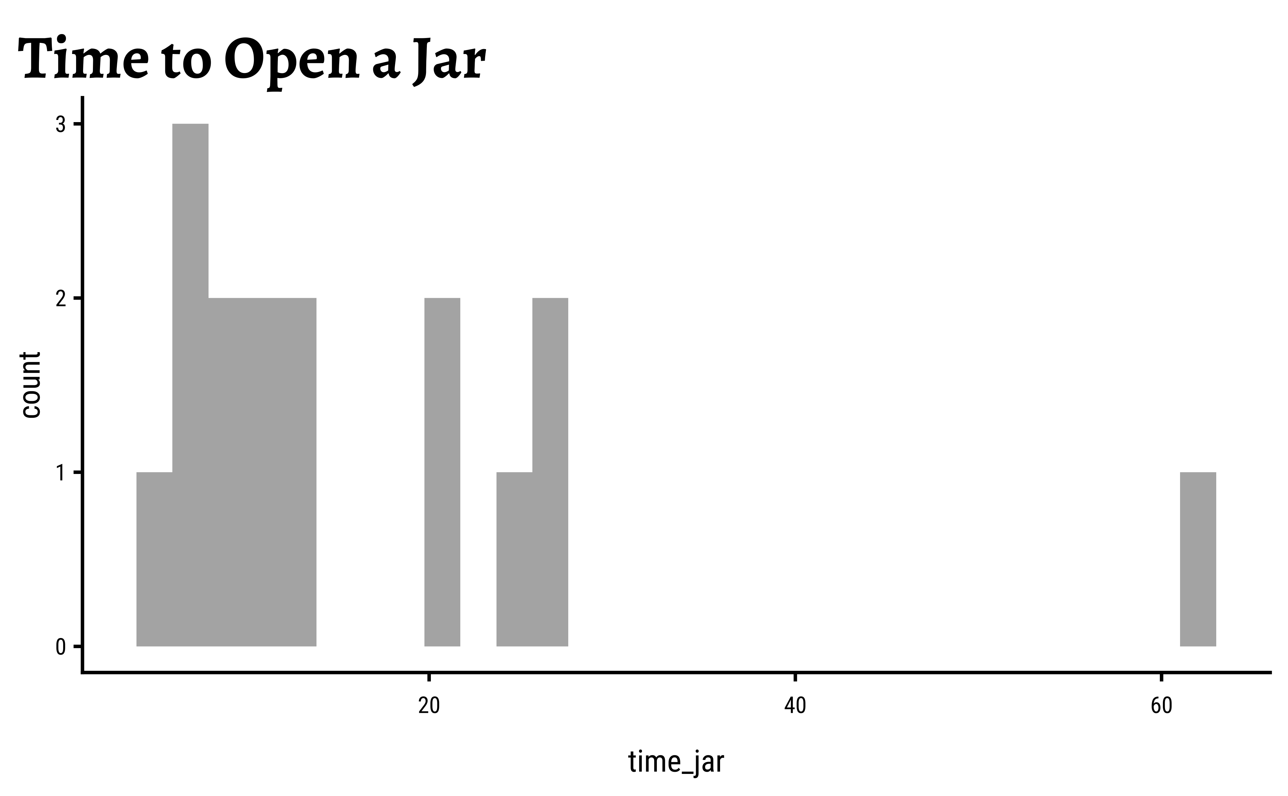 • Yes; the people with hand pain take longer to open the packages (meh, but all right!) While medians are not too different across the two groups, the distribution tails extend longer in the case of hand_pain = YES.